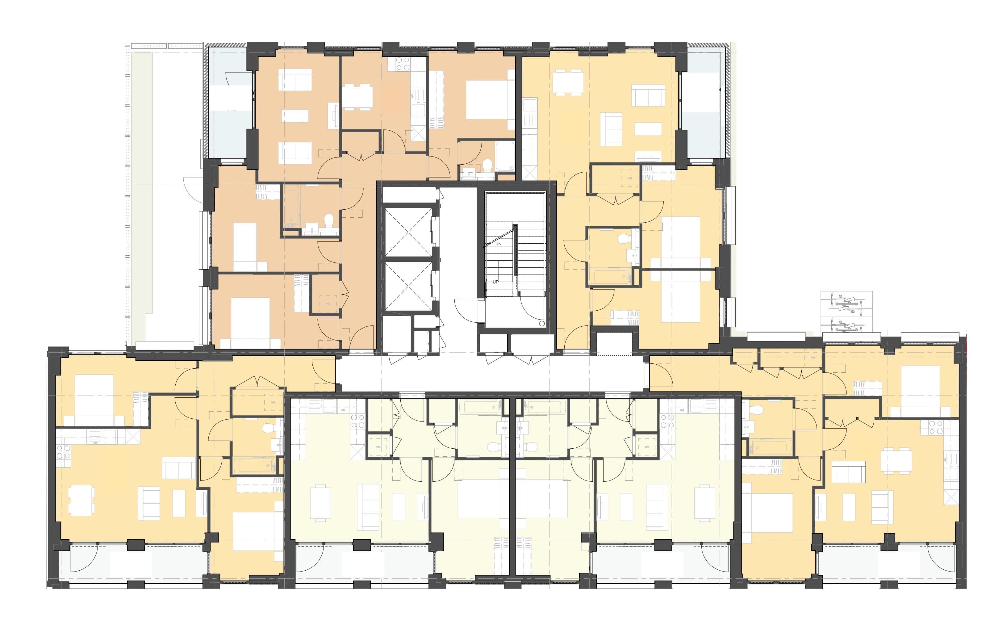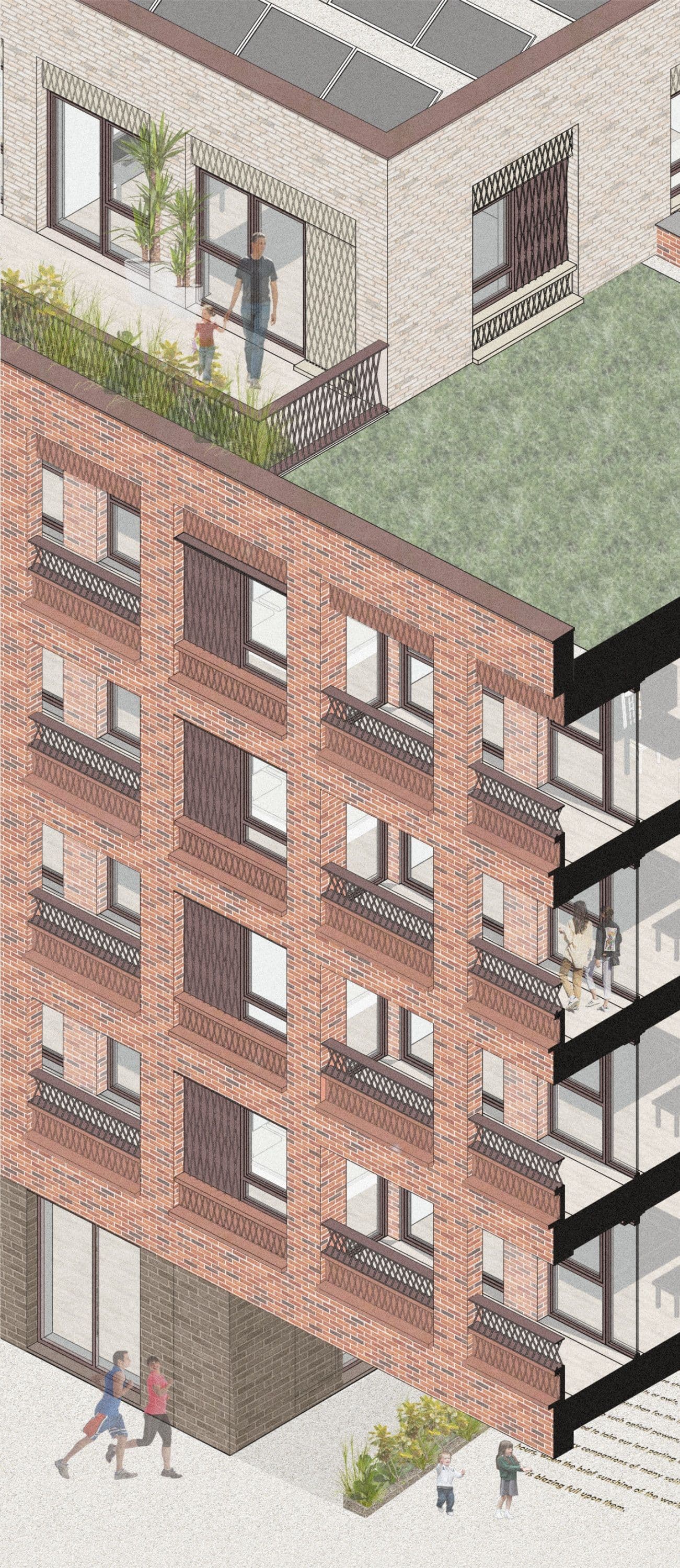 The development replaces existing two-storey offices with approximately 3,000 sqft of new ground-floor resident-facing office and community workspace, including meeting rooms supporting day-to-day engagement with residents. Above, a mix of one-, two- and three-bedroom homes will all be let at social rent levels. Accessibility is embedded throughout, with level access, evacuation lifts and wheelchair-accessible homes. The scheme embodies the resident-led ethos of both the Leathermarket Community Benefit Society (CBS) and Joint Management Board (JMB), delivering high-quality facilities that directly serve the local residents.