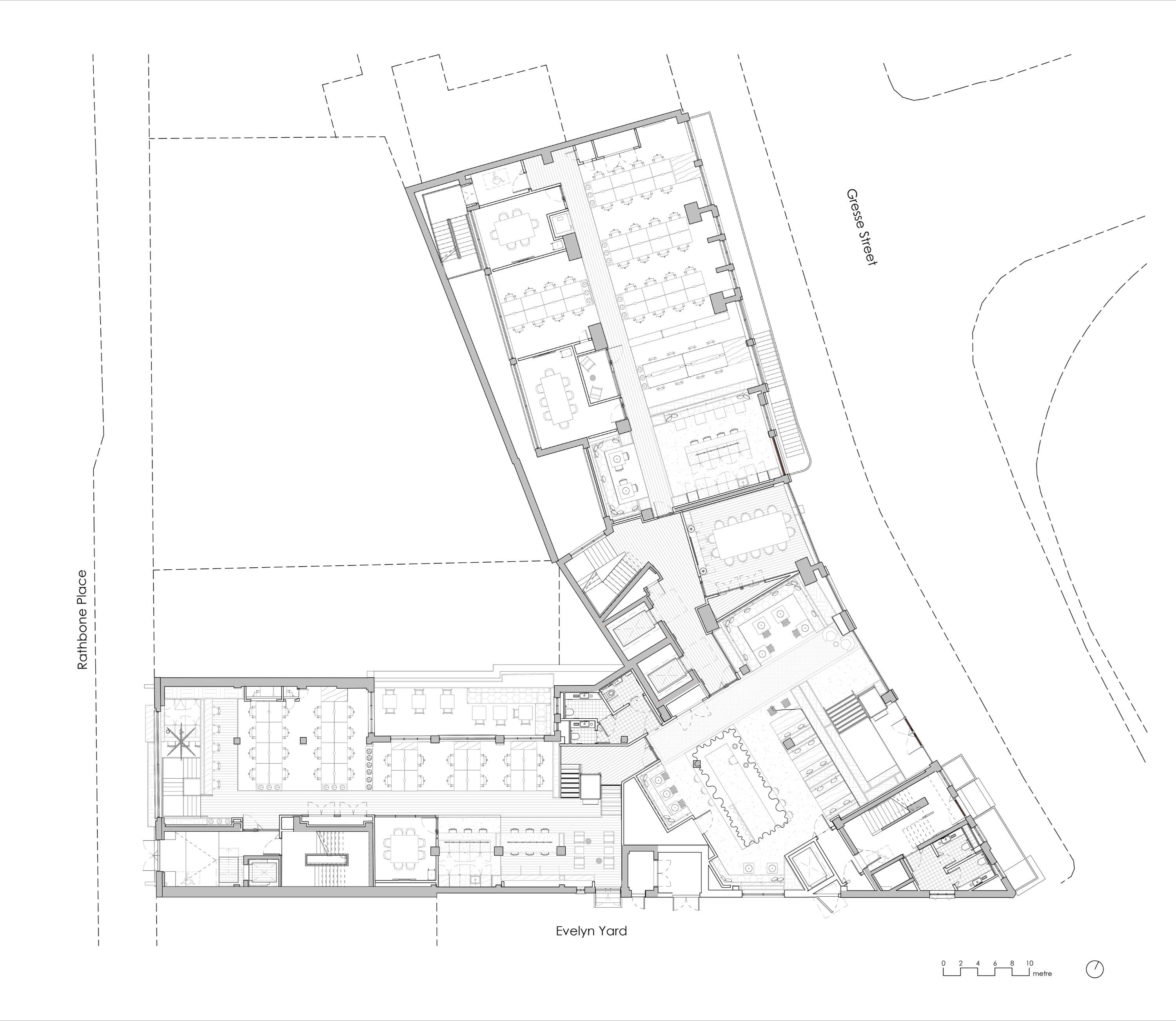Amenities have been thoughtfully designed to offer moments of retreat, connection and comfort – from generous arrival spaces and meeting rooms to a gym and rooftop terrace overlooking Rathbone Place. Each space supports wellbeing and collaboration, enriching the everyday experience of future GPE customers.