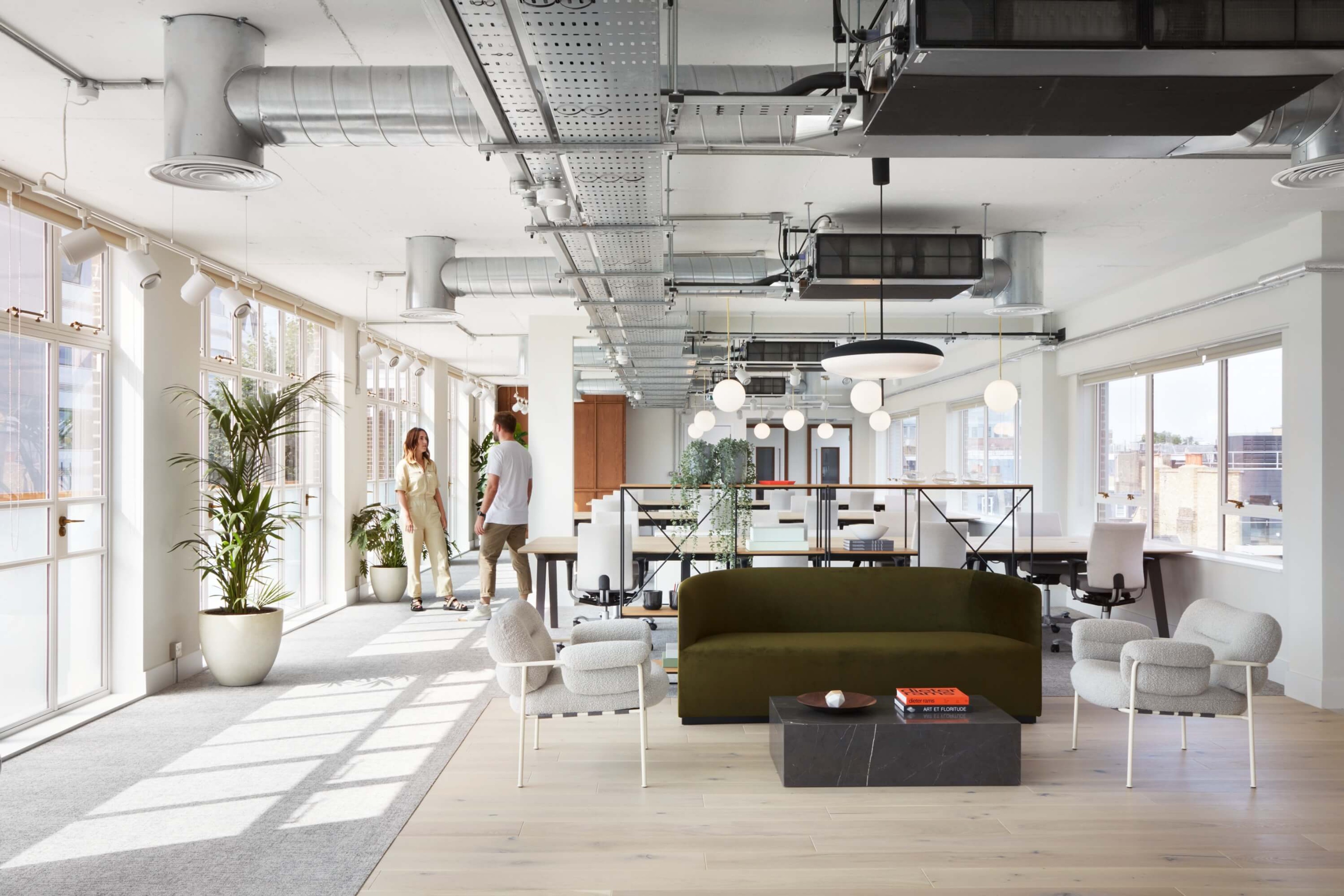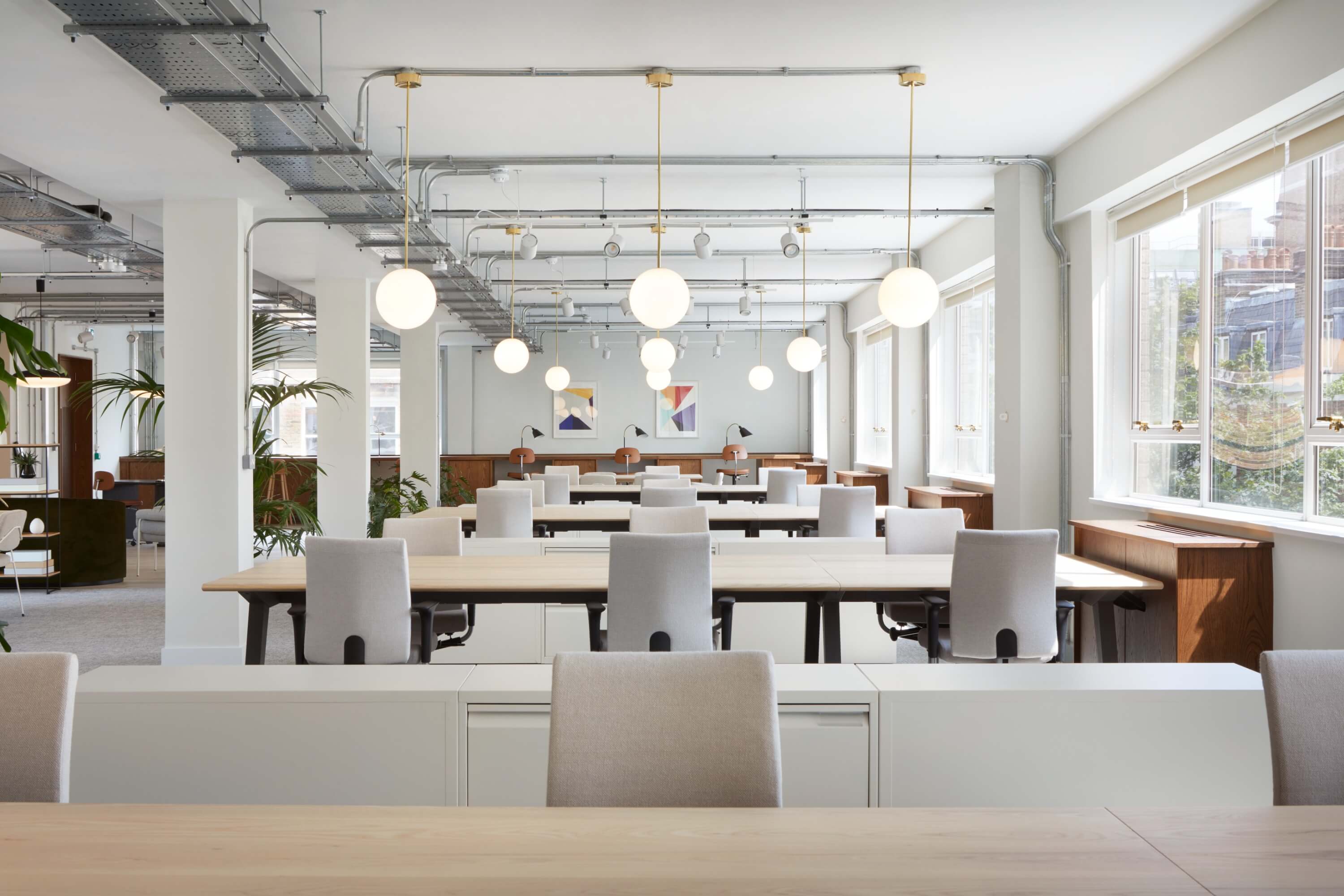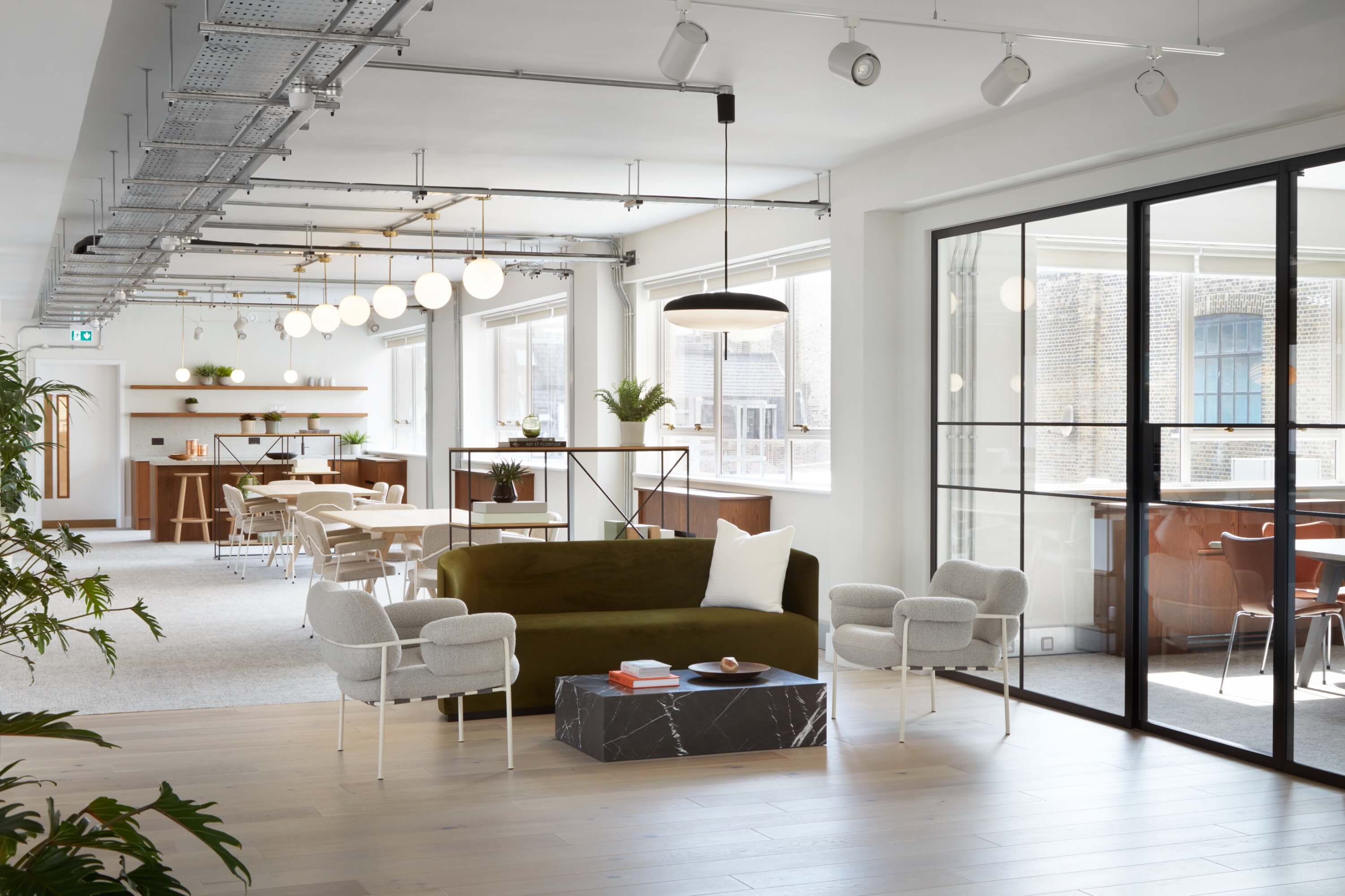 The brief asked for high-quality, enduring interiors with the agility of coworking and the practicality of a single demise. Rather than overwrite the building’s character, we looked for ways to reference it through proportion, colour and detail – allowing the new spaces to feel contemporary while acknowledging their origins. Amenity was key: layouts needed to support different ways of working, with a clarity that avoids constant reconfiguration.