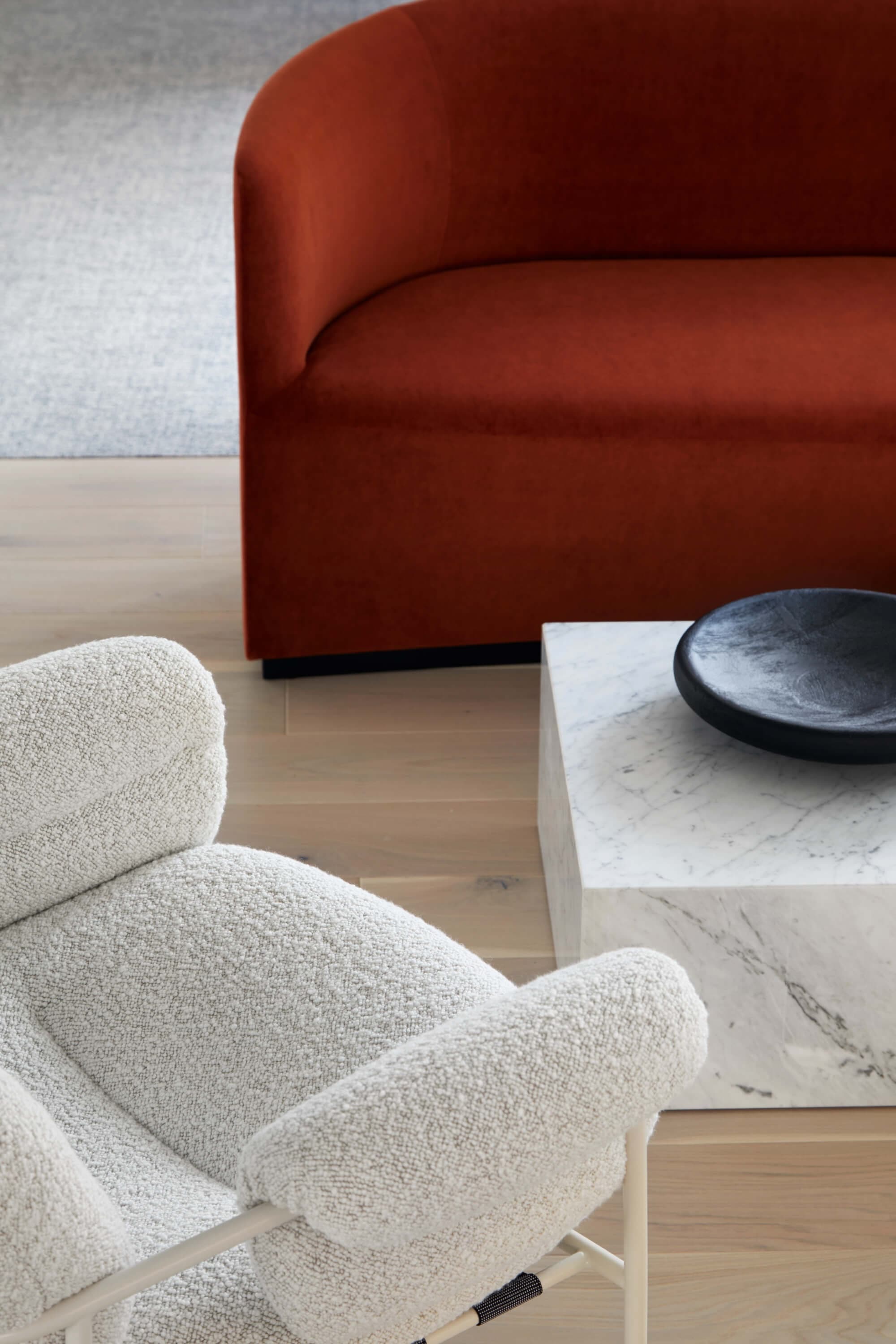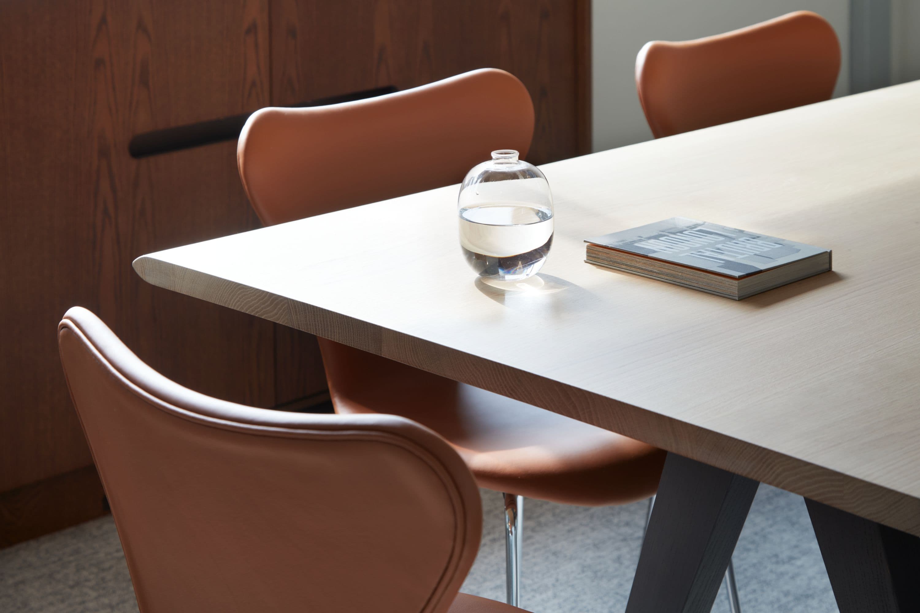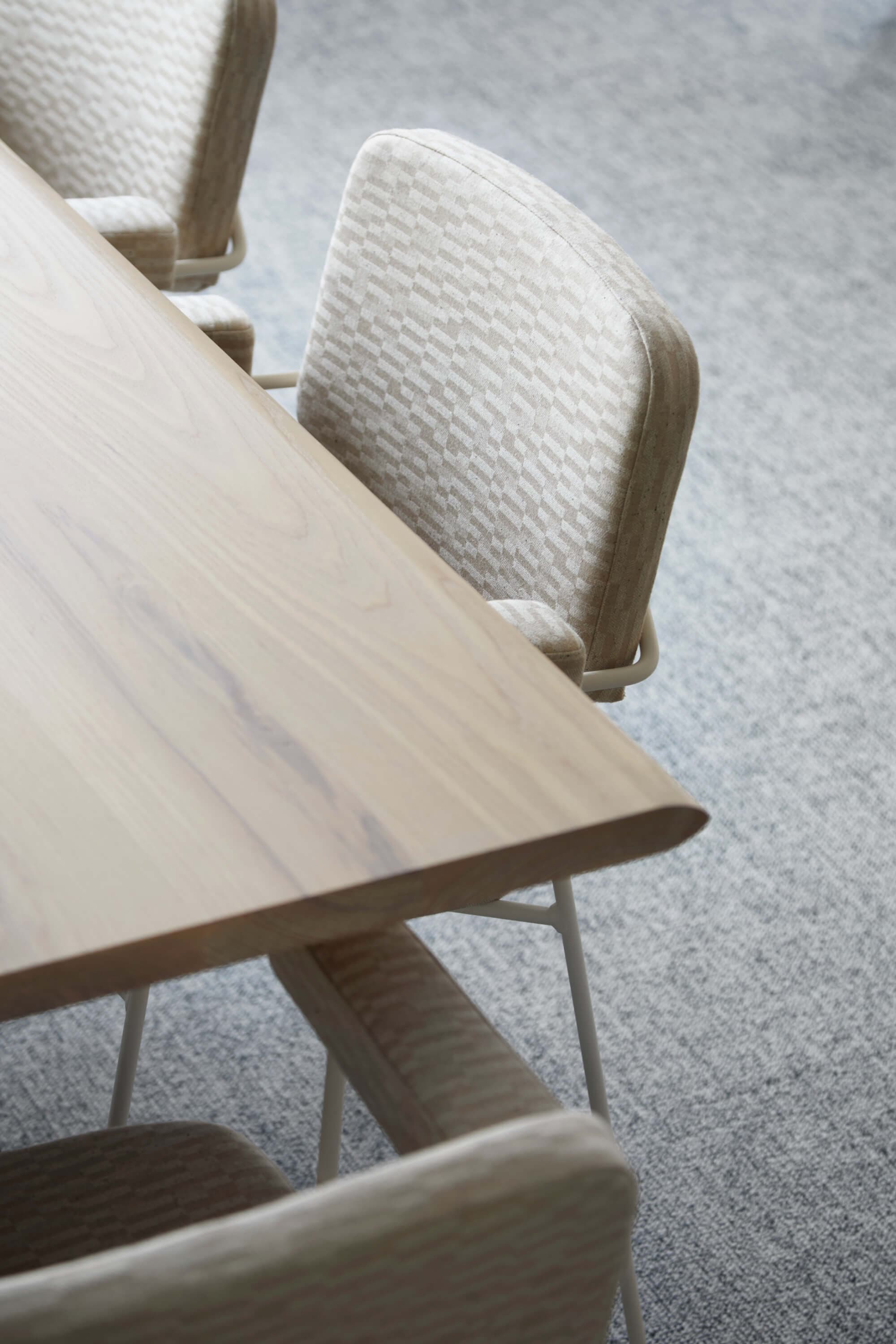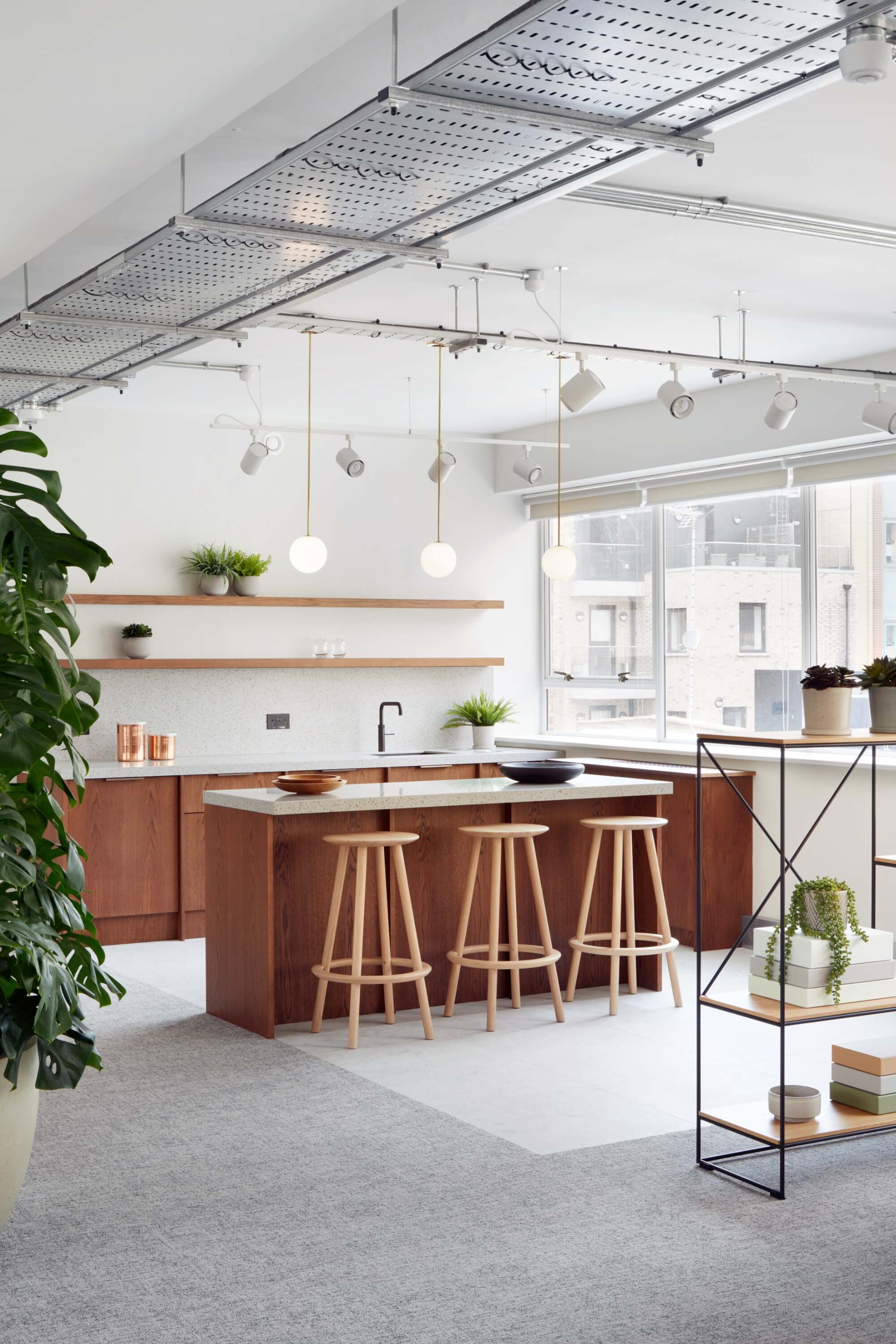 We began by understanding what could be retained and reused. Existing services were refurbished where possible, and finishes were repaired rather than stripped away. New insertions were purposeful and restrained. Subtle nods to the building’s past appear in details such as the custom upholstery, which references the shapes of the terrace’s original balustrade, now restored and refinished. A simple palette of timber, resin and metal complements the structure without competing with it.