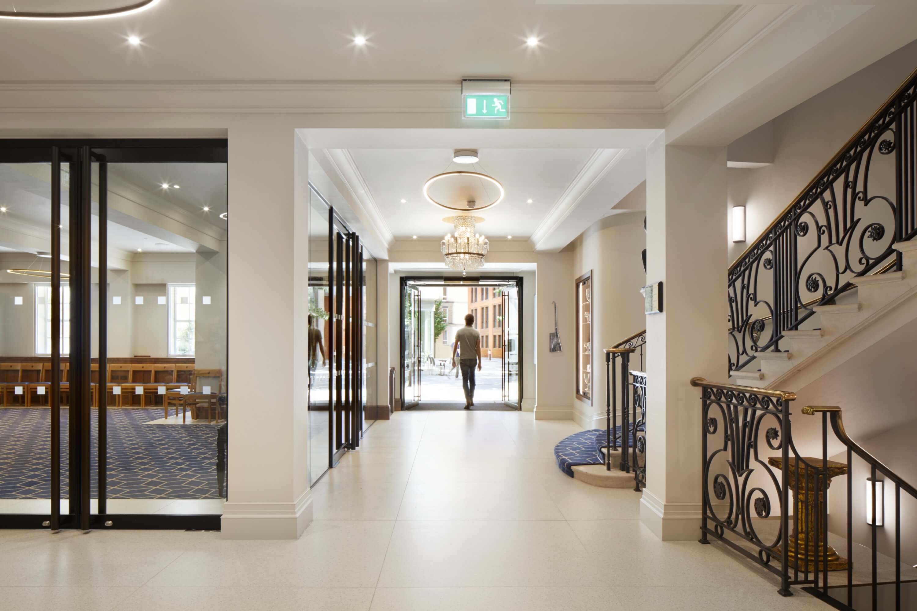 We reconfigured the interiors and introduced a new multi-lift core to connect floors and make every level accessible. The Great Hall and courtrooms were sensitively renewed – improving flexibility, acoustics and services while retaining proportion and detail. Where possible, materials were restored rather than replaced, giving familiar spaces clarity and purpose. A contemporary reception now sets the tone – bright, welcoming and practical.