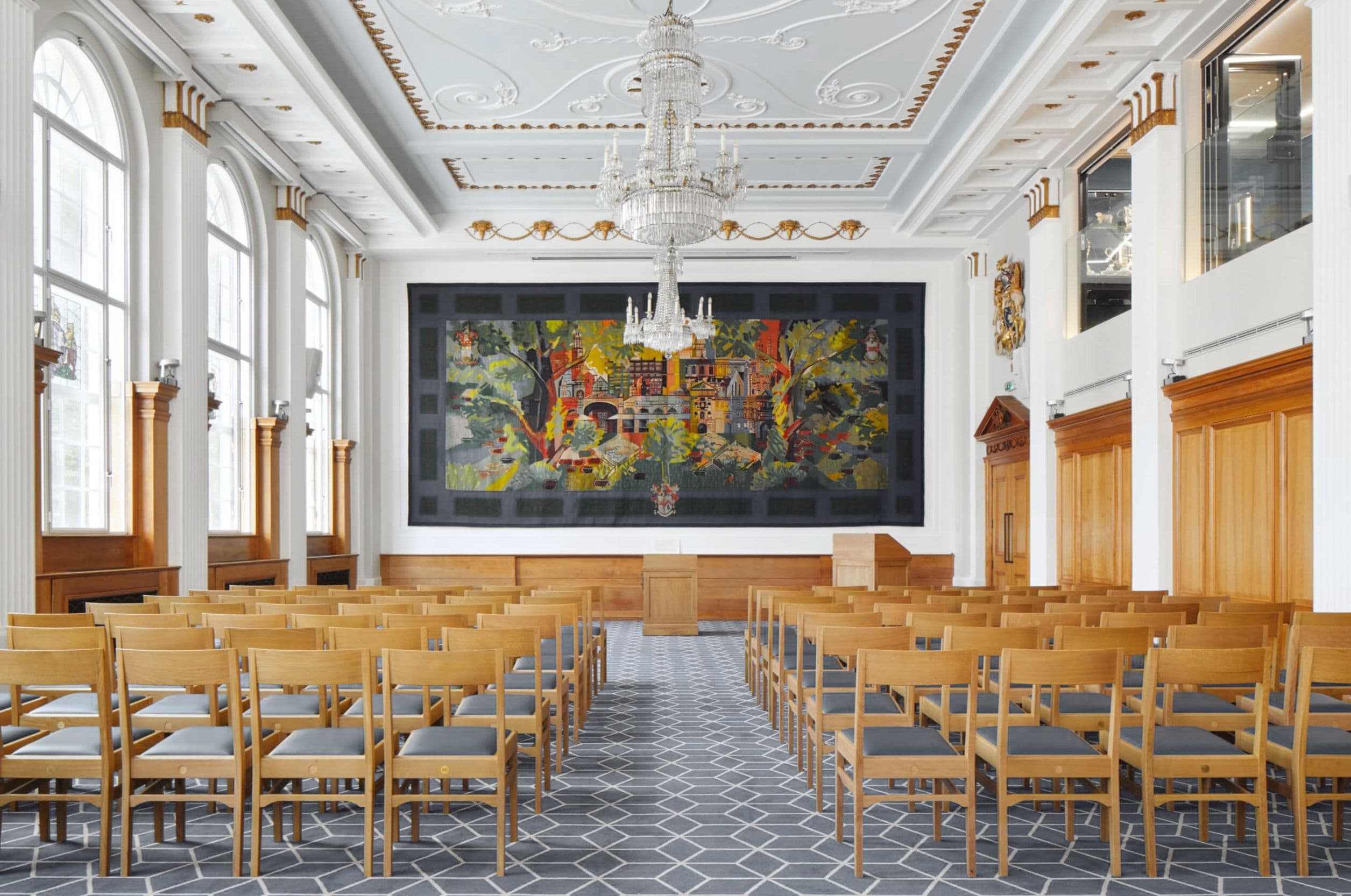 Above, a two-storey extension adds lettable office space, complemented by a rooftop garden with long views across the City. Upgraded services and building fabric improve comfort and energy performance, while interventions remain deliberately discreet. The result is a hall that works harder on every front – supporting community life, generating income and safeguarding heritage – while staying unmistakeably Butchers’ Hall.