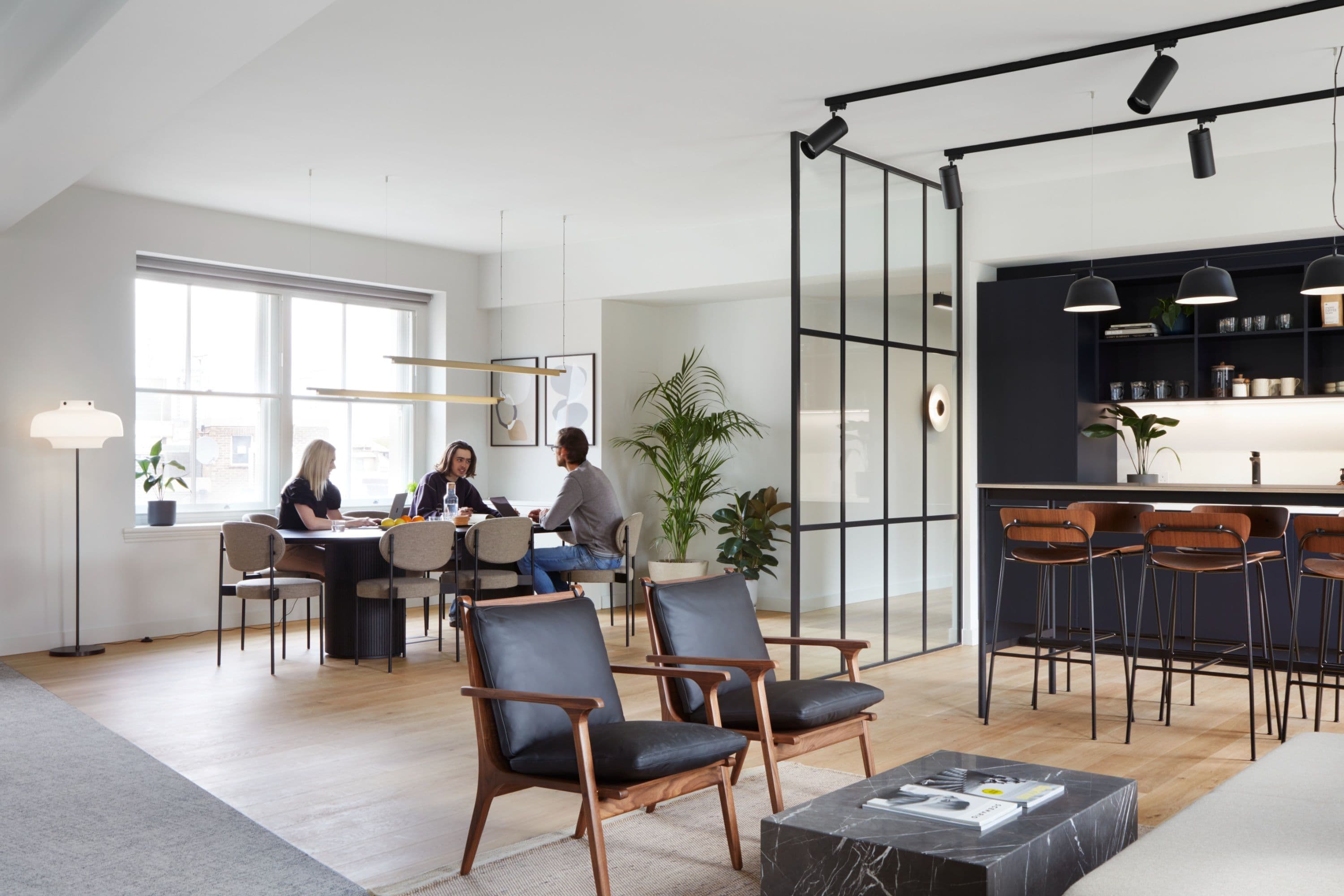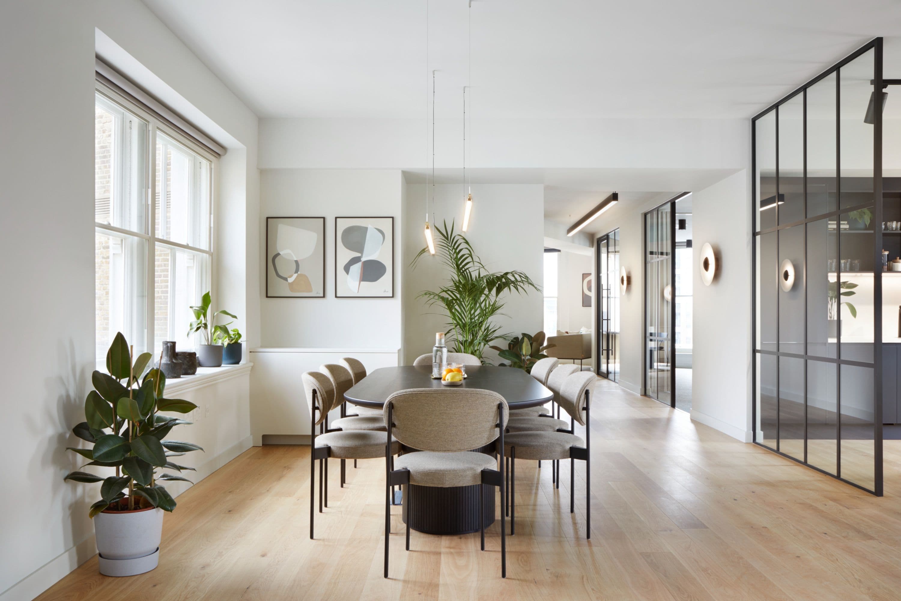 The ground, first and fourth floors are refurbished to Cat A standard, providing light, efficient floorplates ready for tenant fit-out, while the third floor is delivered as Cat B workspace, complete with workstations, meeting rooms, phone booths, kitchenettes and breakout areas. A consistent material palette of high-quality natural finishes and muted tones brings cohesion across both specifications.