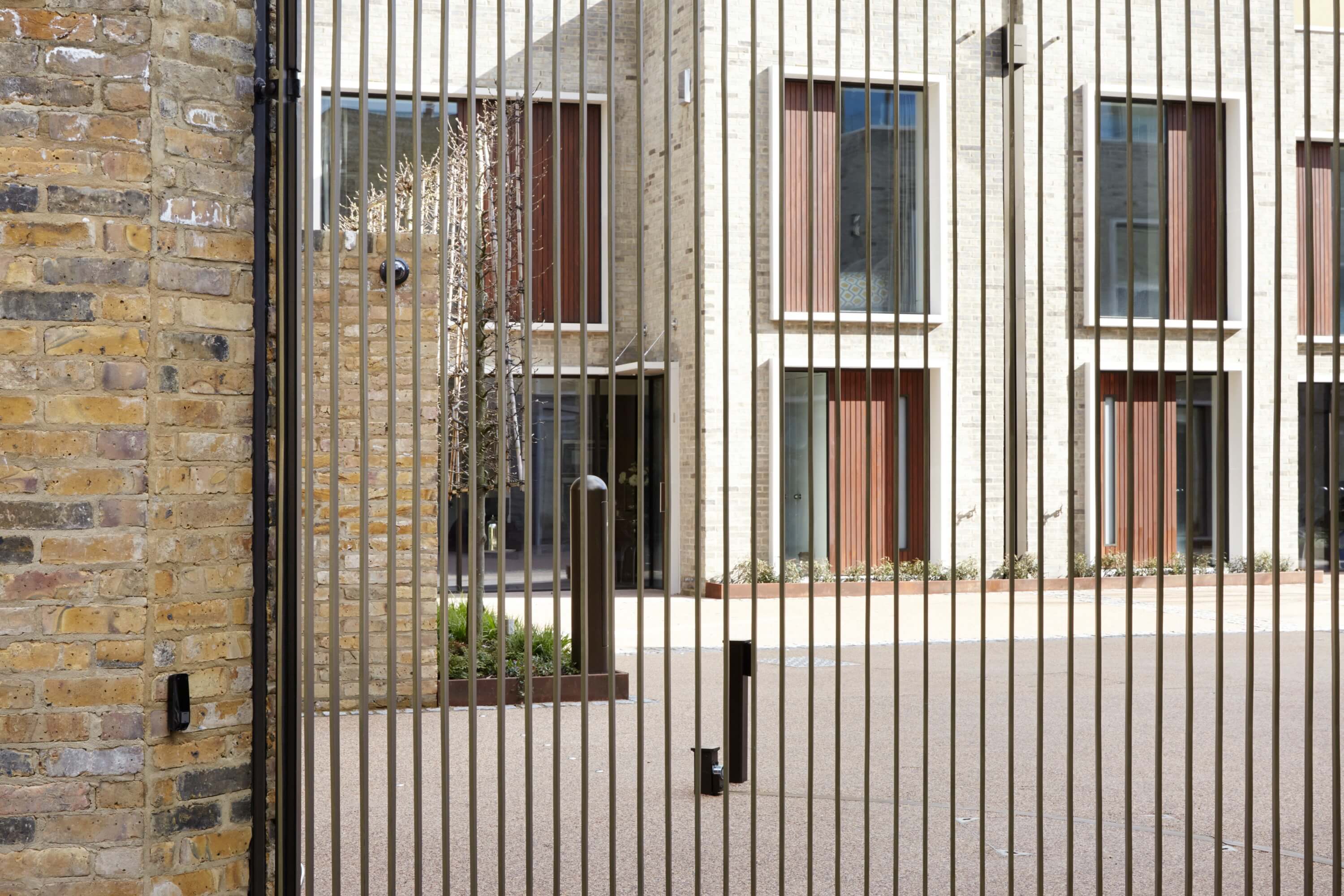 A perimeter arrangement allowed the homes to face into a gated, landscaped courtyard, recreating the character of a traditional mews while shaping outlook and reducing noise. Set-back, partially screened ground-floor terraces create layered thresholds and places for planting and pause. Dual-aspect plans and carefully positioned openings draw light from the side and above, giving each home a strong connection to the shared landscape.
