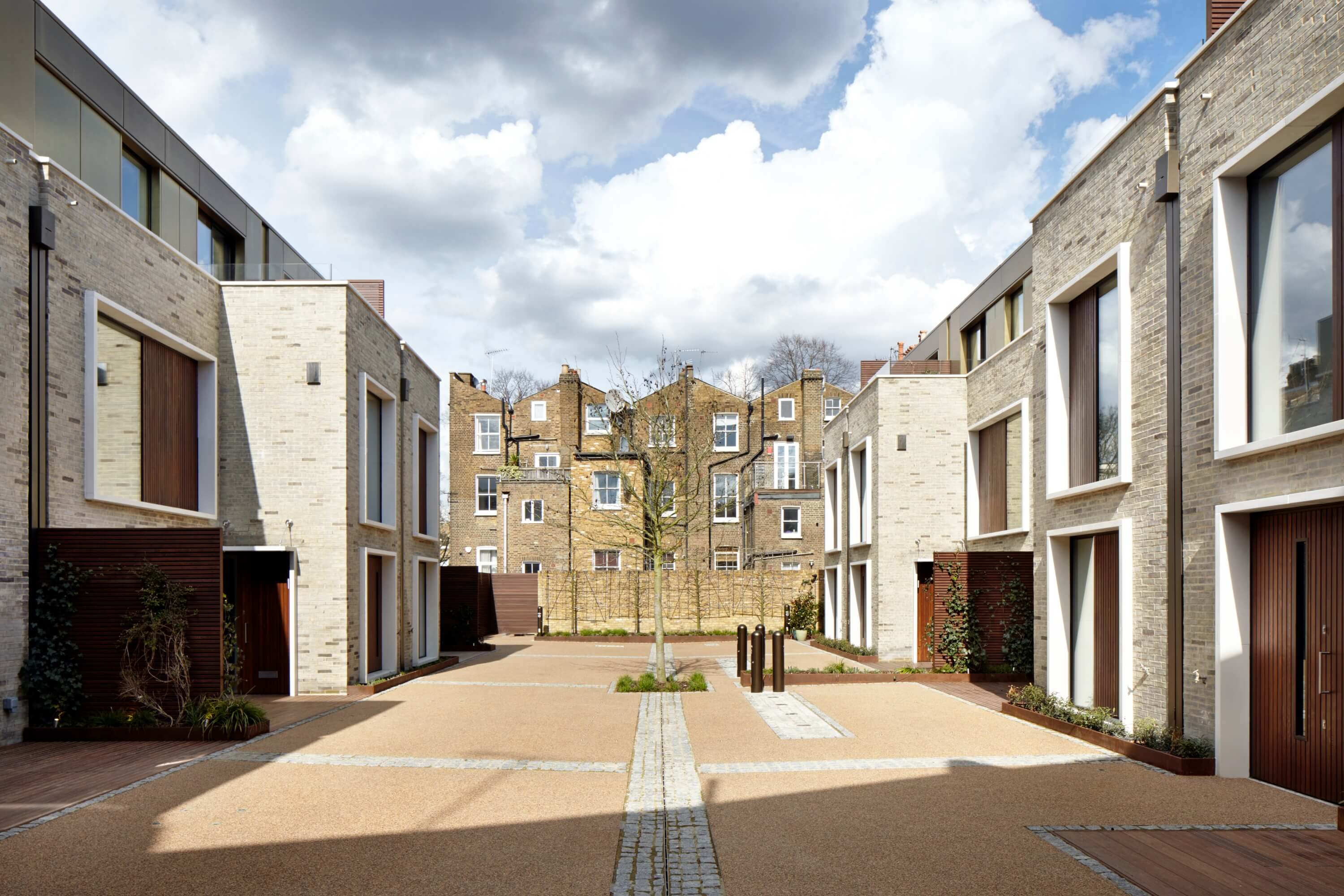 The challenge was to create generous family houses within a tight, inward-facing site. Traditional mews houses often suffer from limited light, so maximising daylight was central to the brief, alongside embedding sustainable technologies from the outset. With a primary school to one side and a steel-drum rehearsal studio to the other, the development also needed to manage noise effectively while still feeling open, comfortable and welcoming.