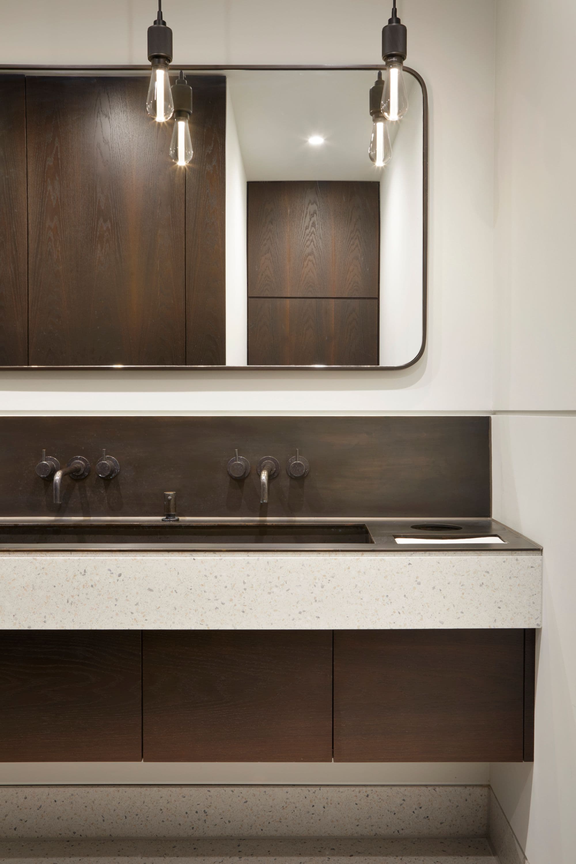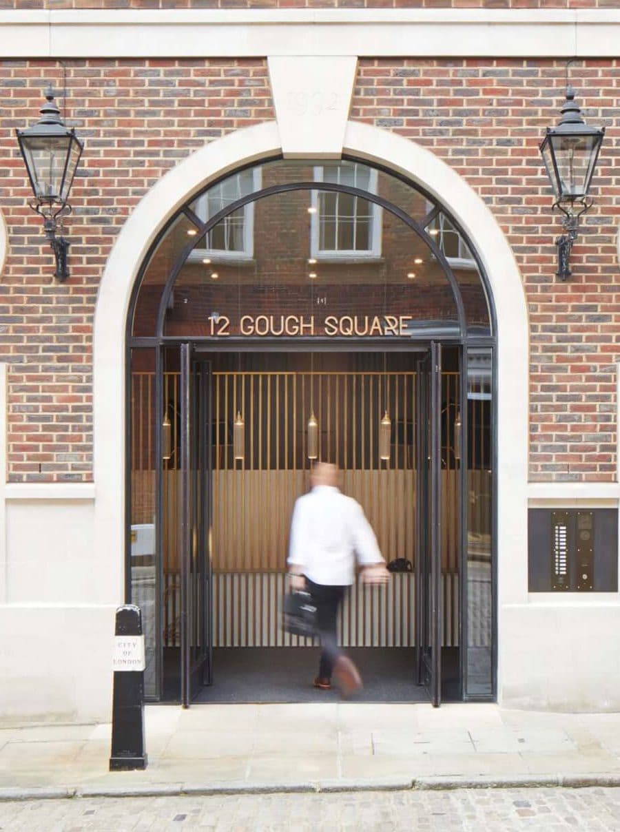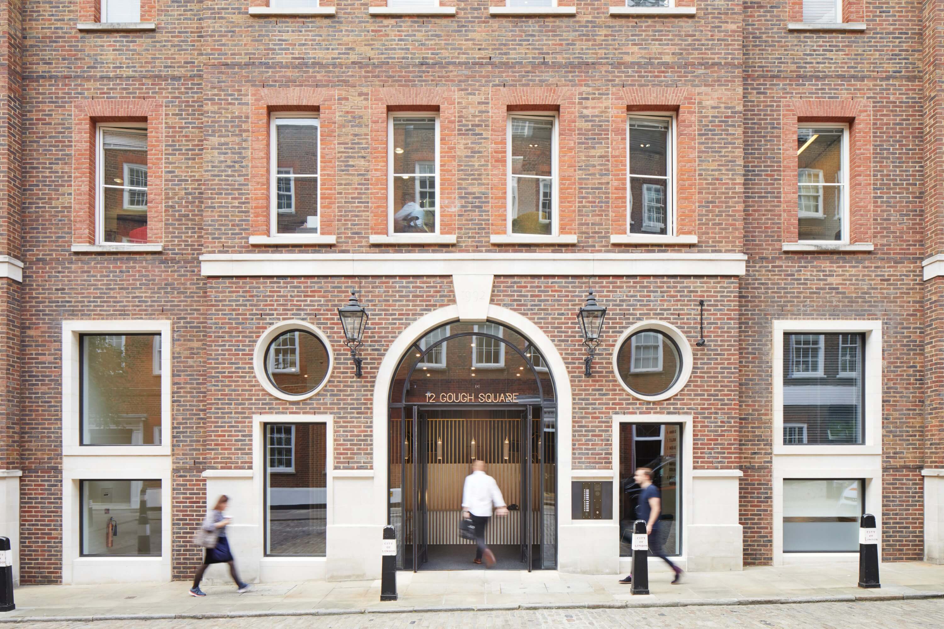 Arrival is defined by a calm, carefully detailed reception. In situ terrazzo, warm timber joinery and a bronzed steel fin screen anchor the space, integrating accessibility while keeping the room visually clear. The palette feels robust yet refined, giving the building a sense of permanence and ease. Across the common parts, bathrooms and office floors, this language continues, bringing coherence to everyday spaces and establishing Gough Square as a place people enjoy arriving at and spending time in.