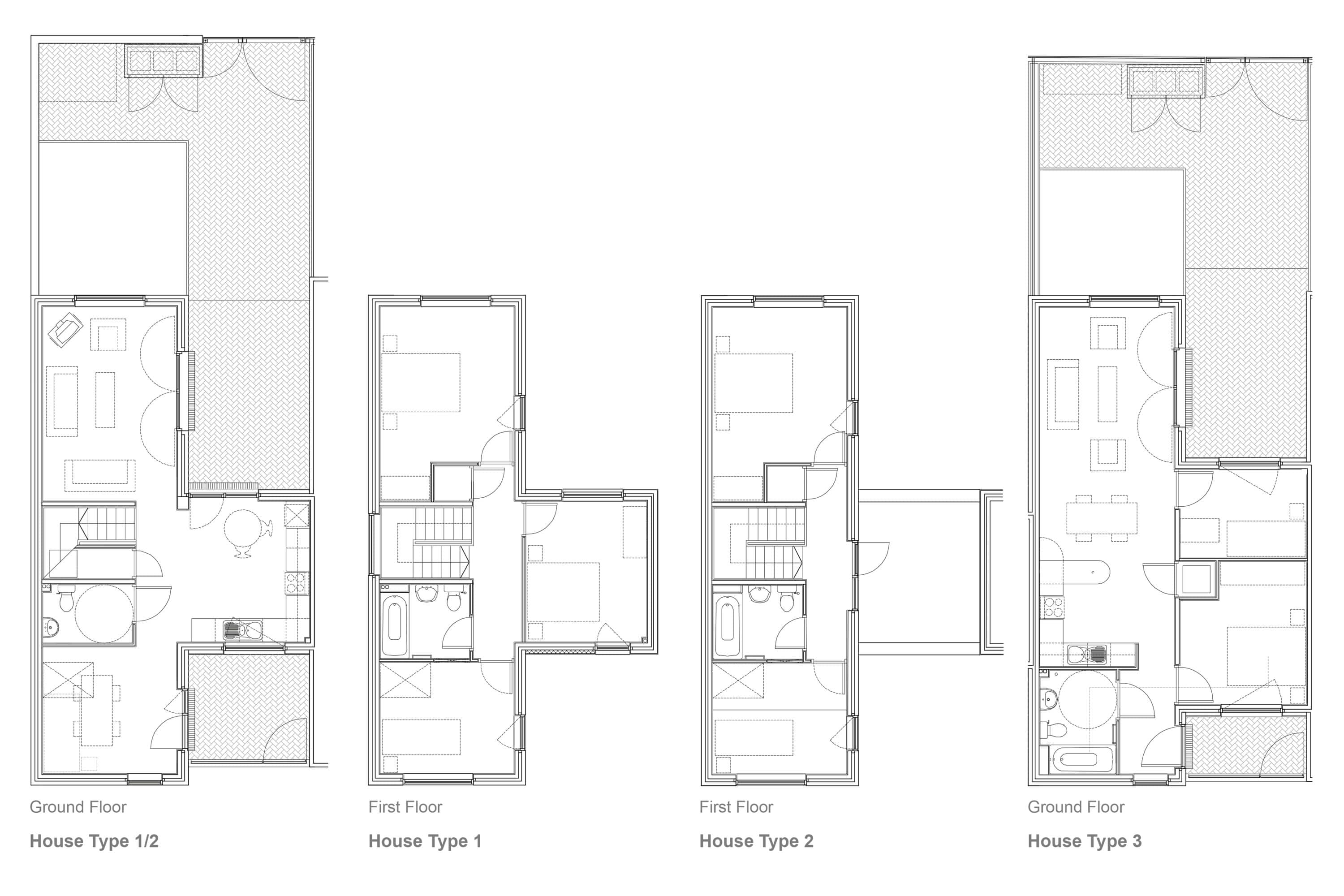 Architecturally, Guest Street draws from the textured, industrial identity of Ancoats. A mix of rugged brick tones and sharp, expressive detailing gives each home presence while maintaining a cohesive terrace. The stepped arrangement follows the geometry of the plot, creating rhythm and individuality along the street. Triple-aspect layouts maximise natural light and cross-ventilation, while private courtyards provide outdoor space integral to daily life.