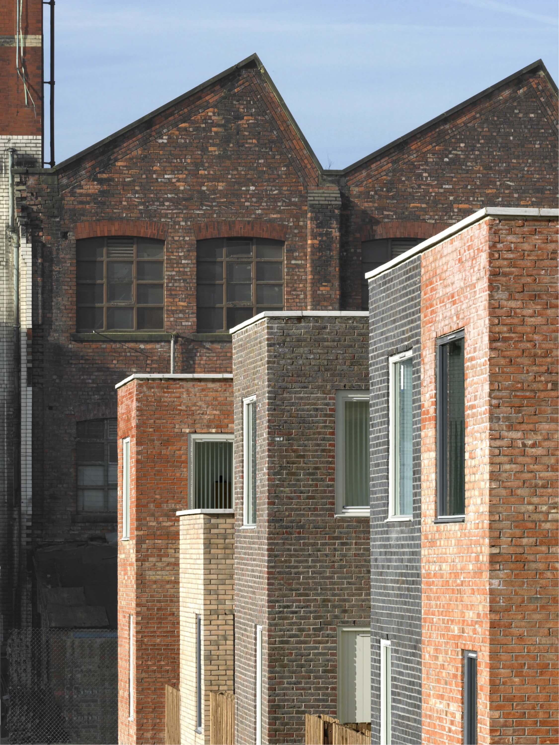 Guest Street sits at the edge of Ancoats, its robust brick elevations drawing character from the industrial fabric of Stubbs Mill and the wider canalside setting. The terrace subtly steps across the site, creating a rhythmic streetscape of triple-aspect homes, private courtyards and big windows. A rugged palette of varied brick tones evokes the spirit of a painted mews, giving the development a familiar, neighbourly presence within the evolving masterplan.