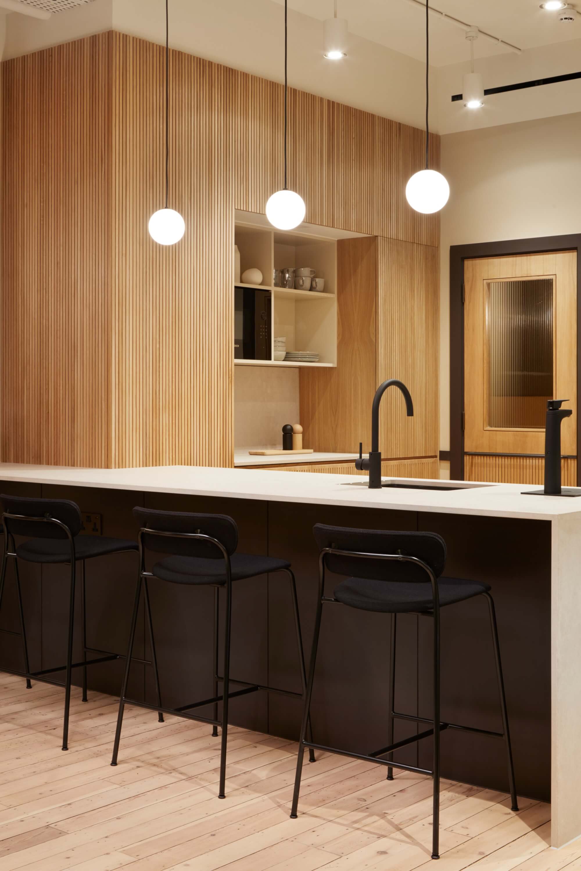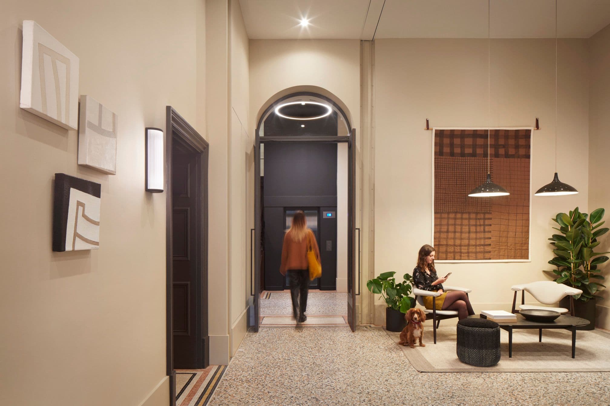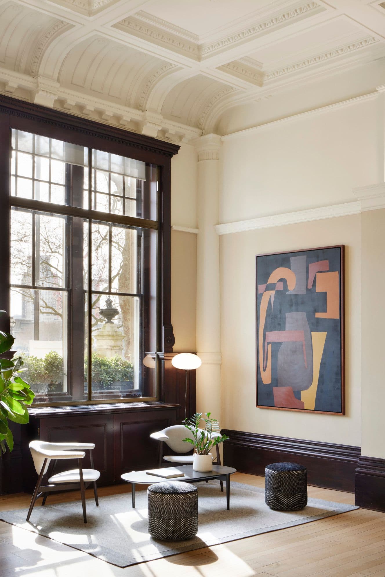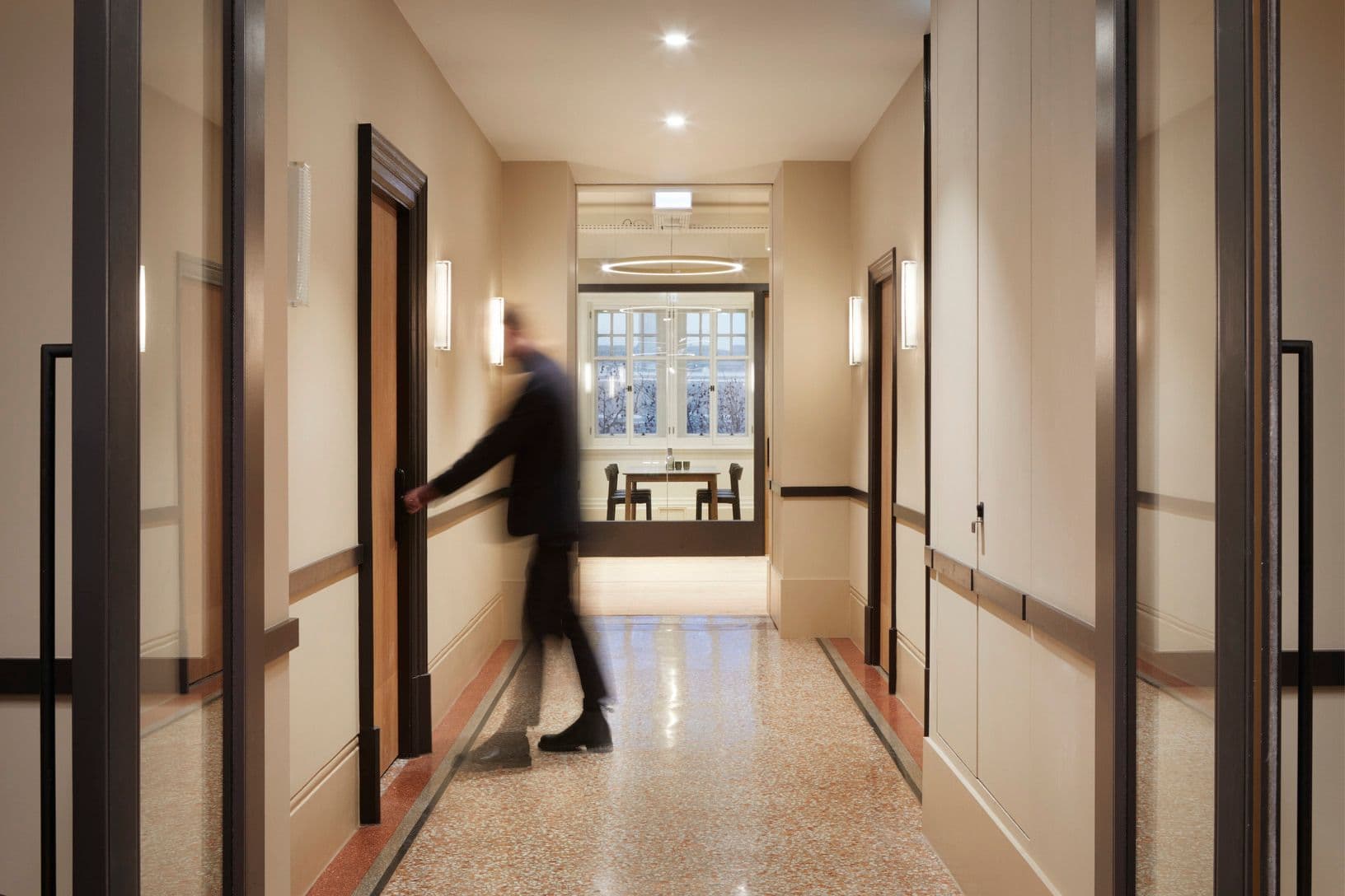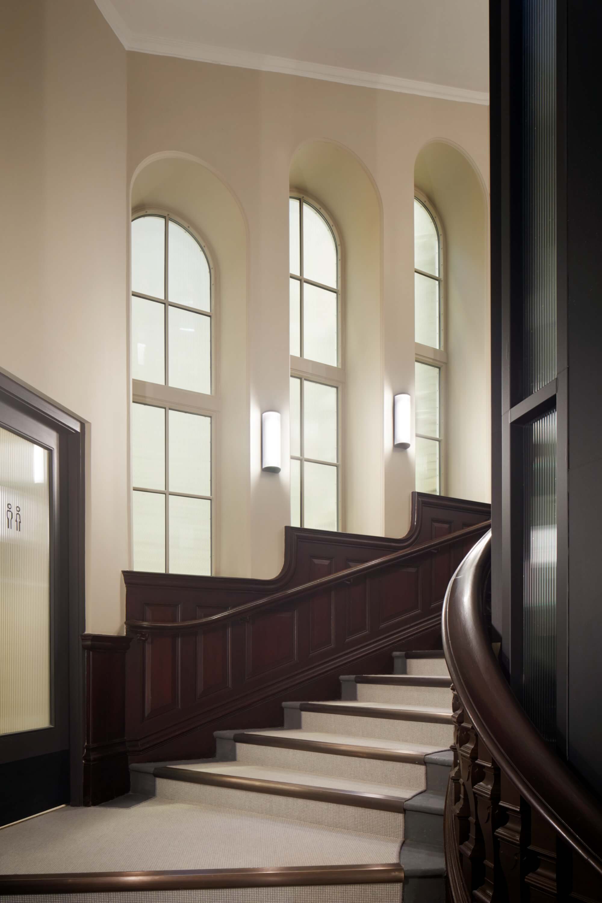 Our approach focused on evolving the story of Hamilton House – protecting its future rather than practising slavish preservation. Layers of past fit-outs were peeled back to reveal the building’s inherent character: suspended ceilings were removed, high-level windows reopened and atriums reinstated to draw daylight deep into the plan. Terrazzo, decorative plaster arches and extensive timber detailing were restored and complemented by a calm contemporary palette, while the reception was sensitively reconfigured to improve clarity and flow.