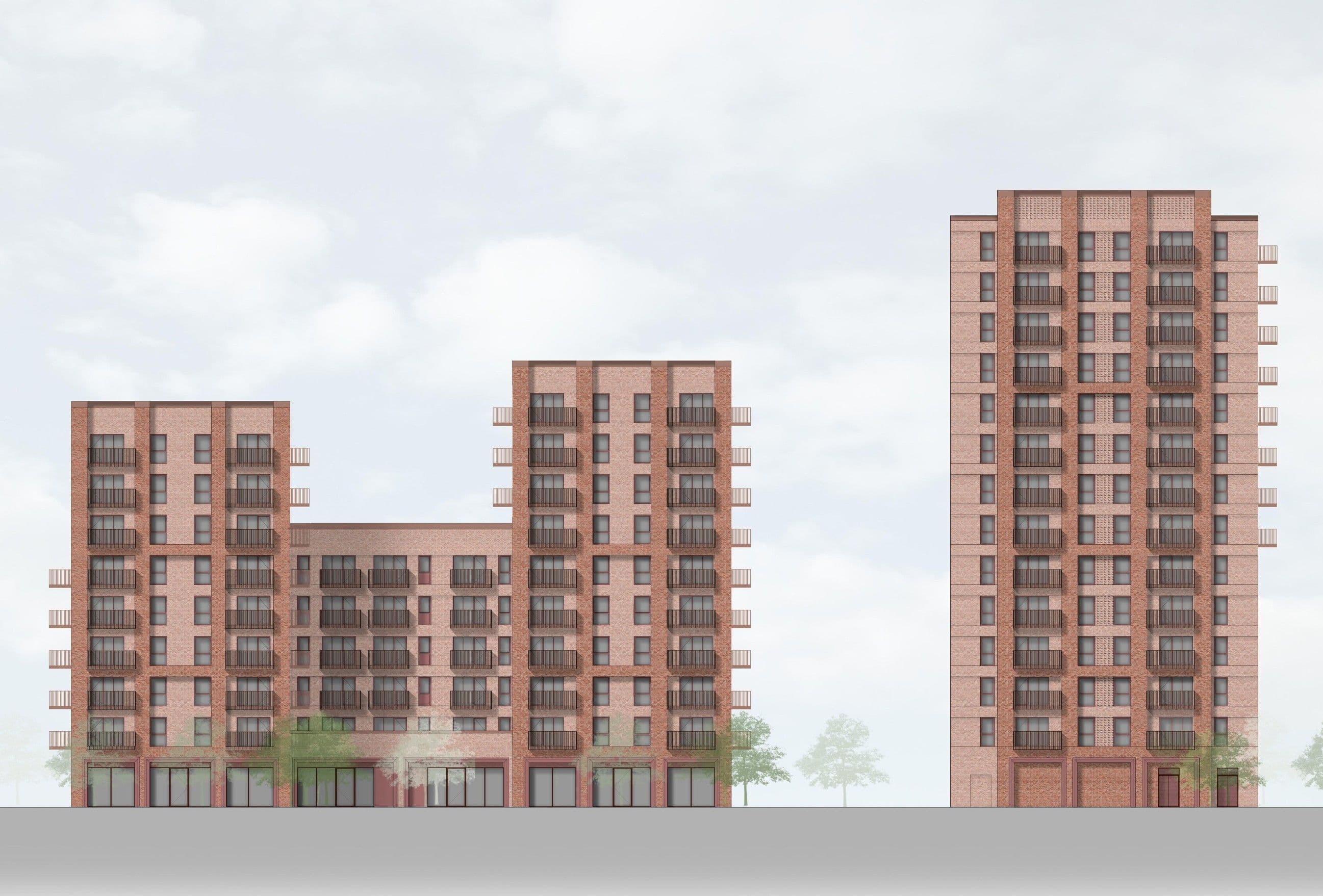 Our consented design for Bell Green Works, also known as Lightmakers, is open, green and connected. Six buildings frame a generous public square with shops, workspaces, planting and places to sit. Pedestrian and cycle routes thread through the site, linking new homes into the wider neighbourhood. Landscaped courtyards create quieter spaces to play, meet and spend time outside. Throughout, the architecture draws on local patterns and textures, helping the development feel rooted in Sydenham rather than separate from it.