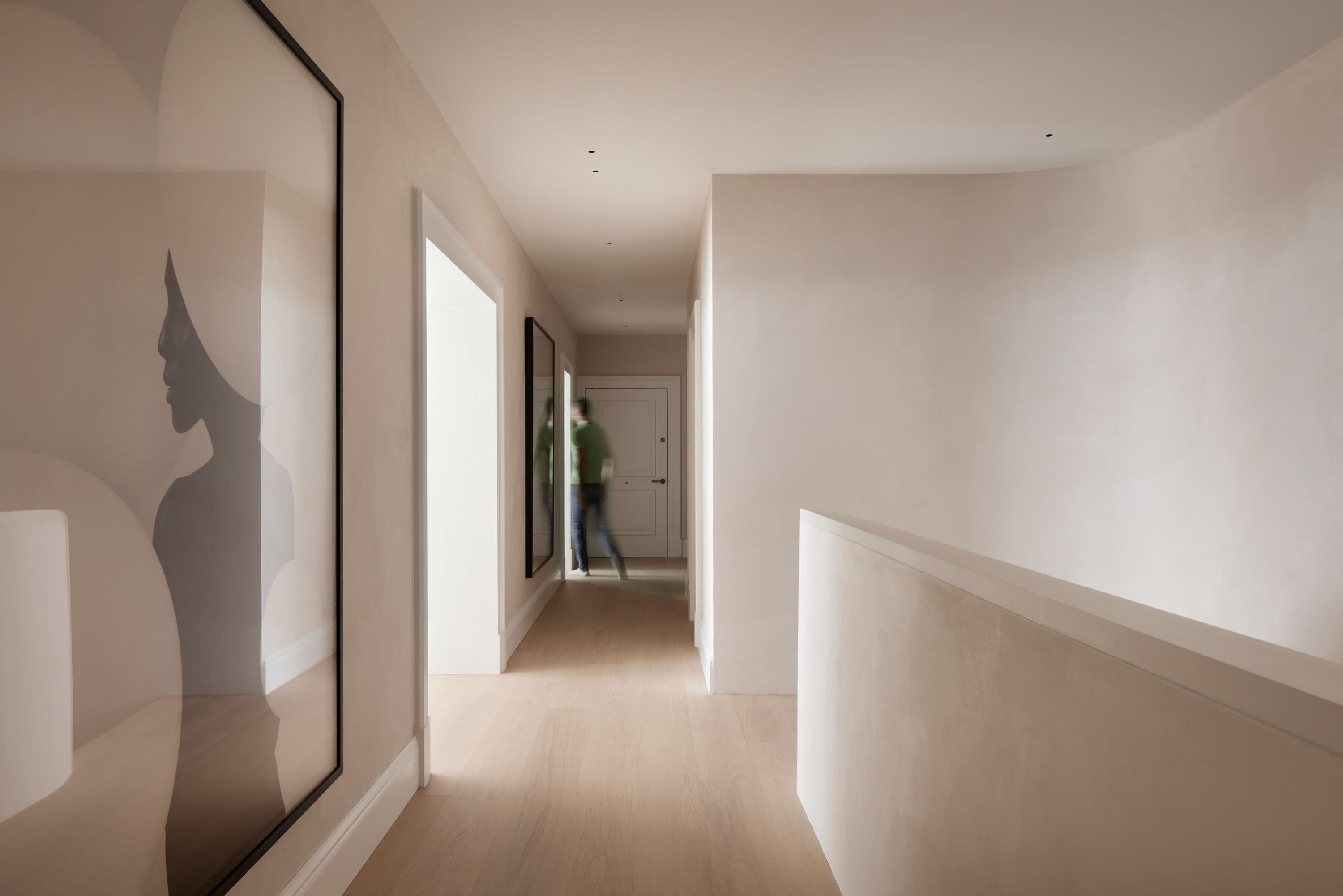 Studio Ferrari Ardicini developed the architectural and material concept, drawing on natural finishes and crafted simplicity to create a calm, cohesive foundation. dMFK, acting as Executive Architect, translated this into built form through meticulous coordination. Services were concealed and ceiling heights preserved to maintain the home’s light-led clarity, while joinery, thresholds and circulation were refined to create seamless transitions and a clear spatial rhythm.