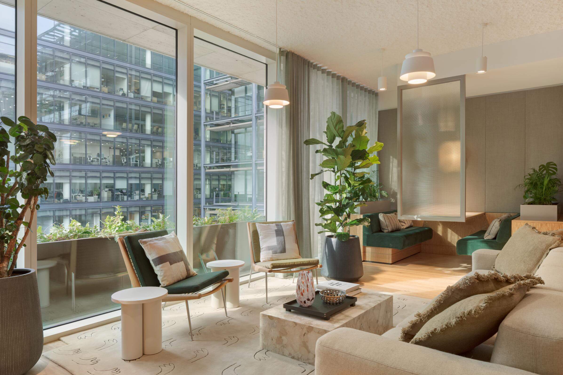 A demand-led services strategy decarbonised the building entirely, introducing HVRV systems and reactivating night-time cooling to improve operational efficiency and achieve EPC A. Plant was relocated to prioritise people over machinery. With WELL Platinum, BREEAM Excellent and NABERS 4.5* certification, MYO New Street Square demonstrates how intelligent retrofit can deliver comfort, longevity and delight – a workplace built to adapt and endure.