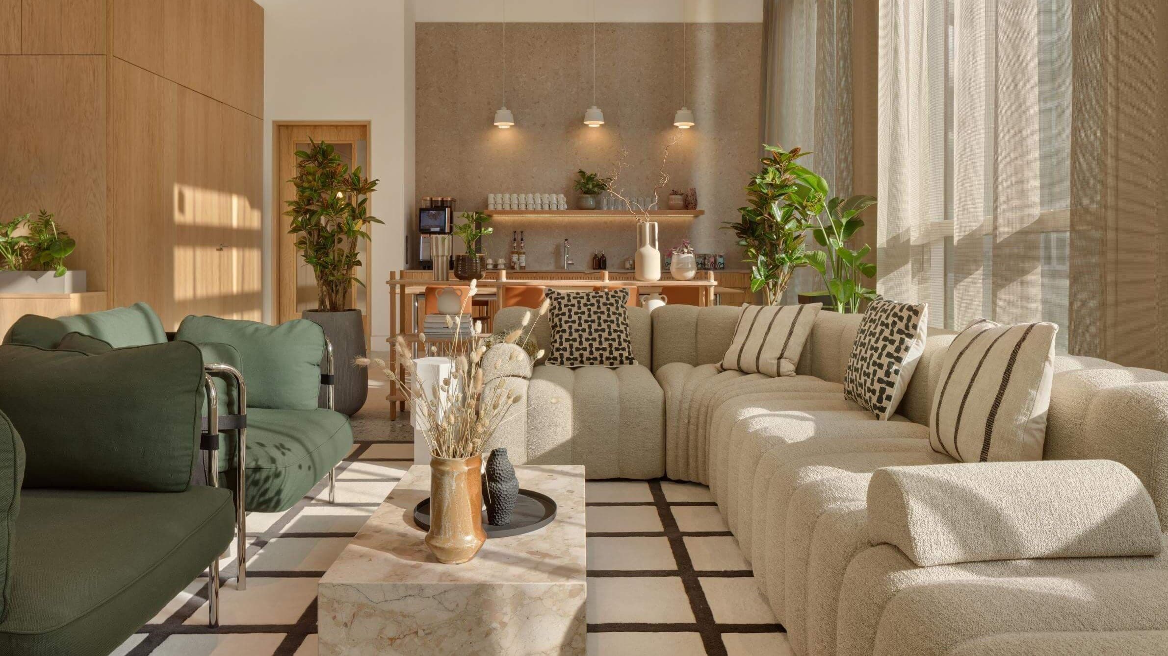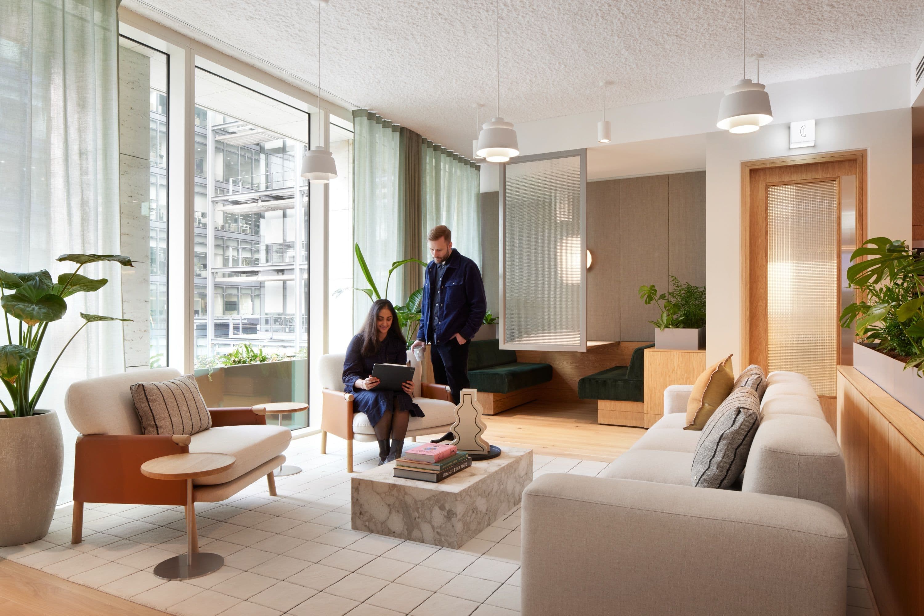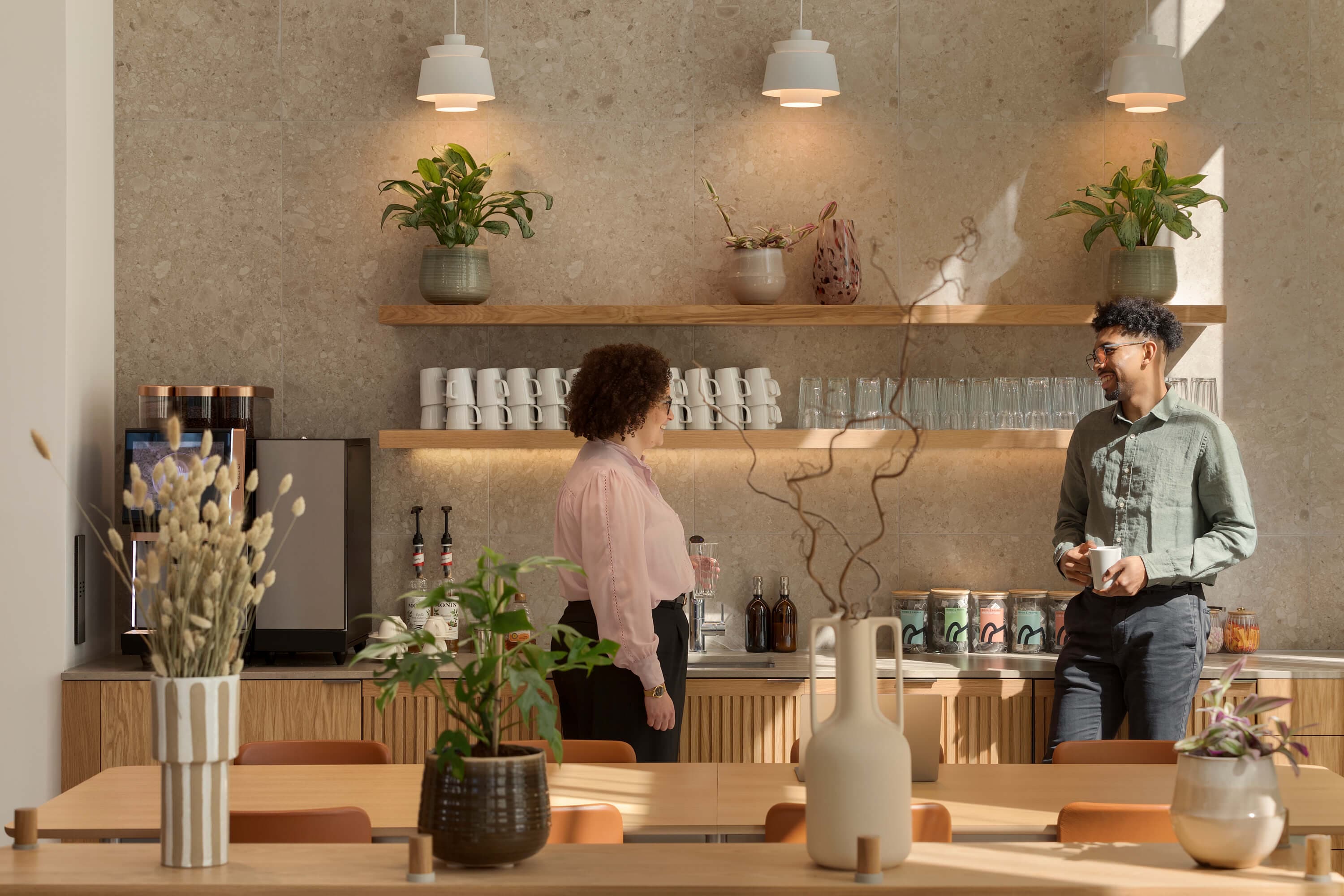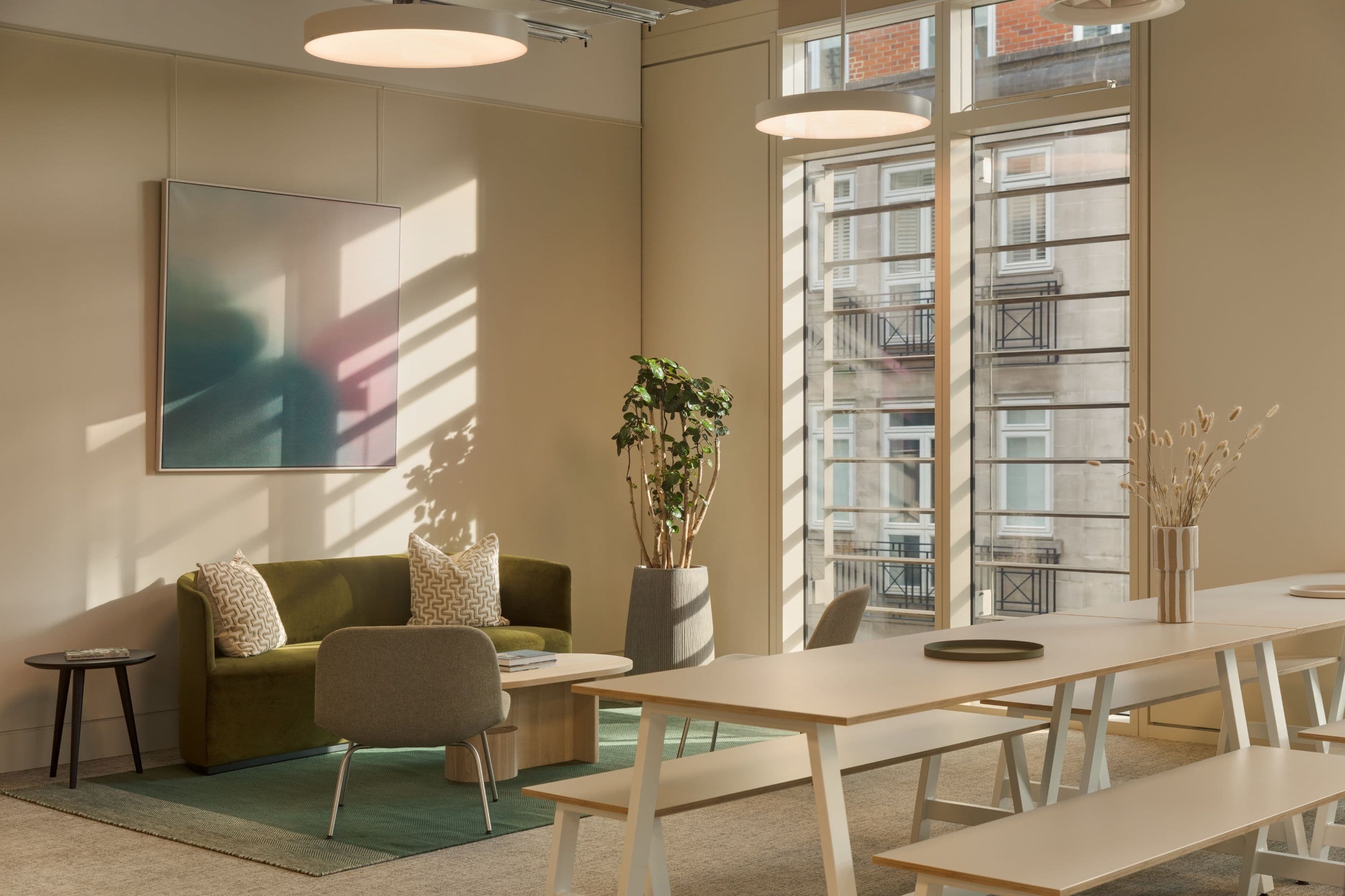 Our brief was to create an interconnected series of spaces that acknowledge everyone works in different ways. Significant work was required to spatially plan the mix of offices, working pods and meeting rooms, balanced with larger communal areas for group work, shared meals and events. The interiors needed to be carefully curated to lend softness and comfort to the overall space.