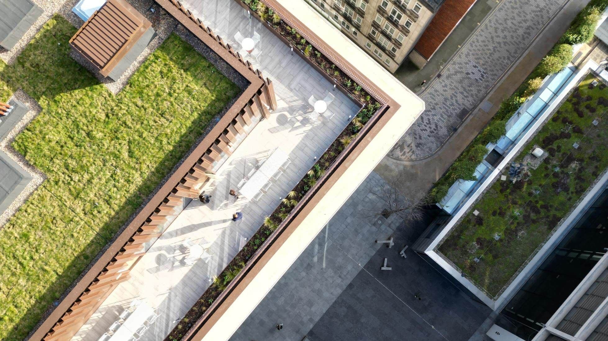 MYO New Street Square is experienced from the inside out. Calm, tactile interiors use oak, terrazzo and soft acoustics to create choice across focused work, collaboration and shared activity, with layouts designed to maximise flexibility. Carefully controlled acoustics, fresh-air ventilation and access to terraces support comfort and concentration throughout the day. Above, a newly added rooftop pavilion and landscaped terrace extend the building upward, transforming the roof into a light-filled destination for events, working al fresco or enjoying the city views.
