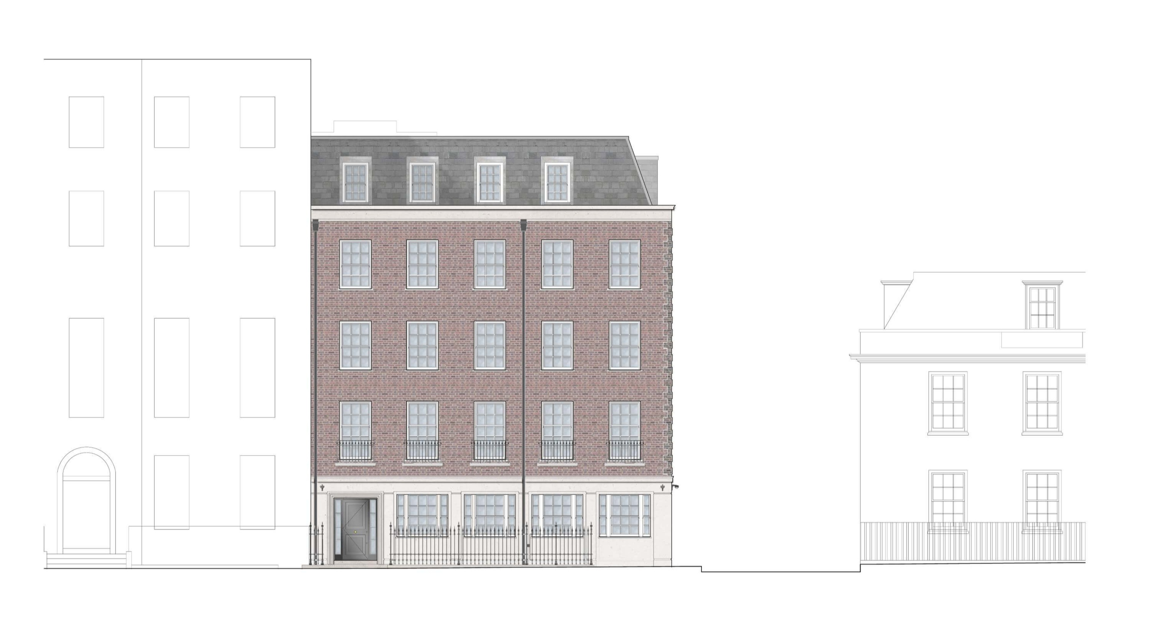 The brief called for a building that worked well both commercially and residentially. High-quality workspace on the lower floors would sit alongside three private apartments above, including a new home formed within a mansard roof extension. The aim was coherence: one building, multiple uses, all sharing the same calm, refined character.