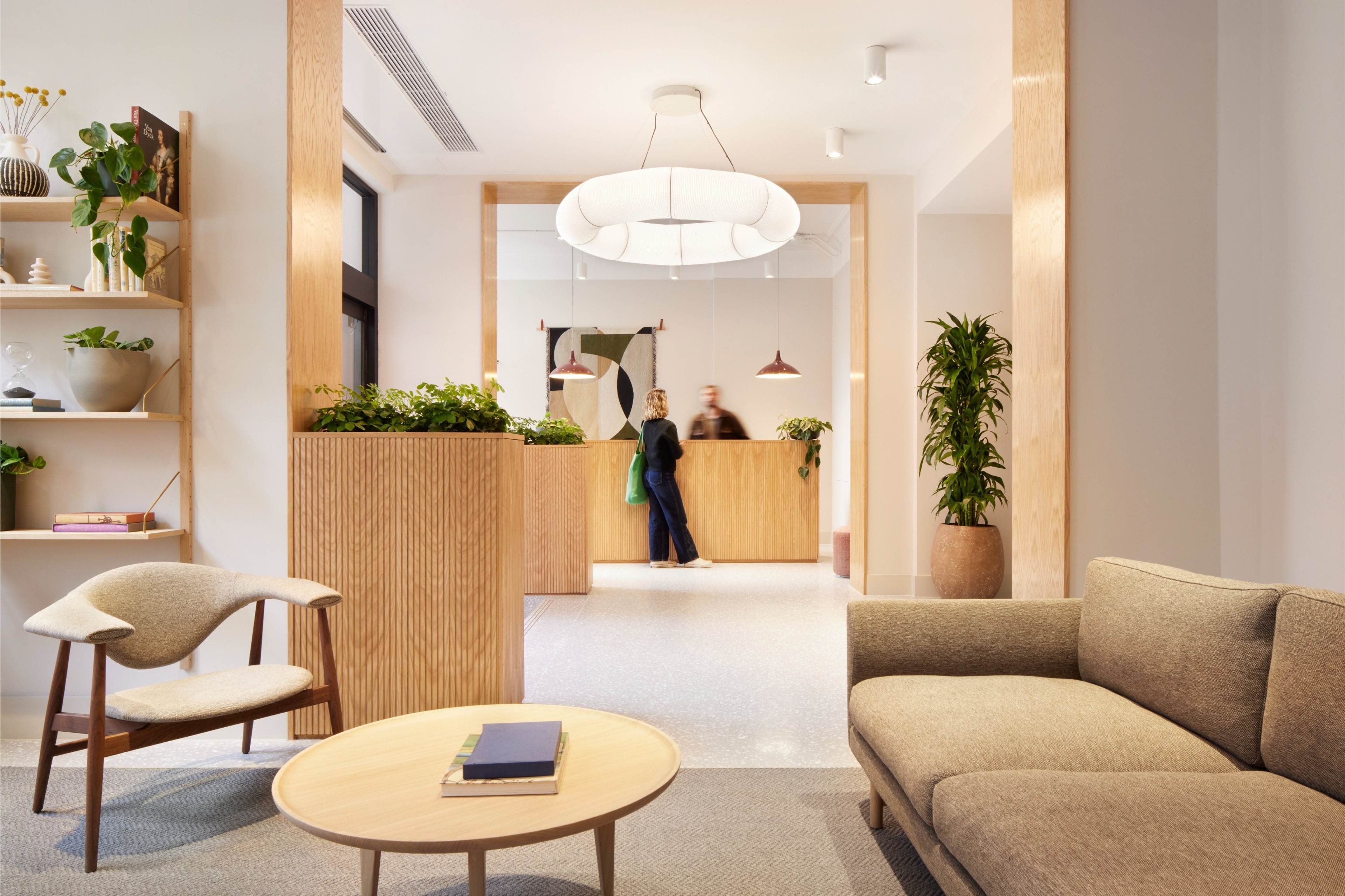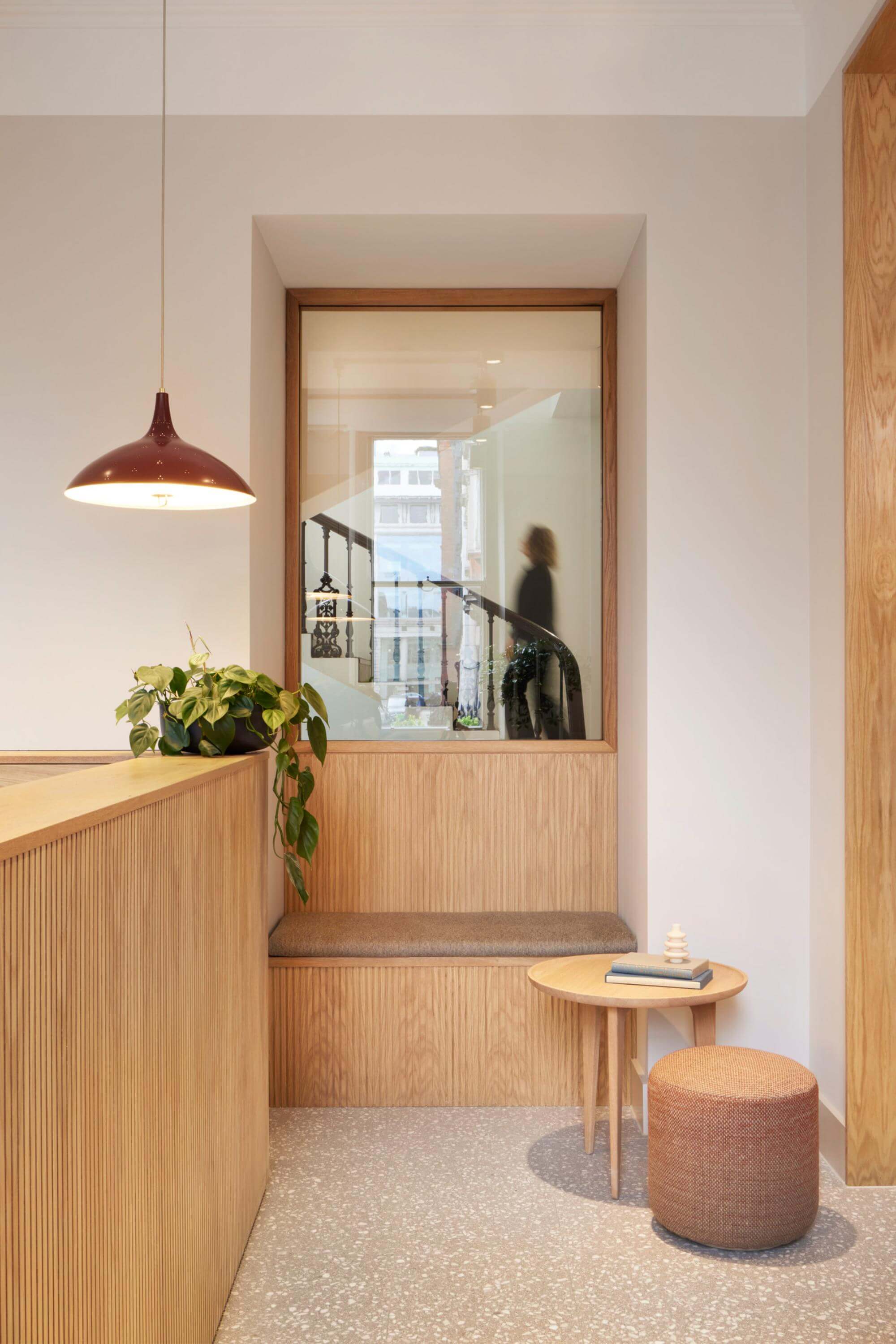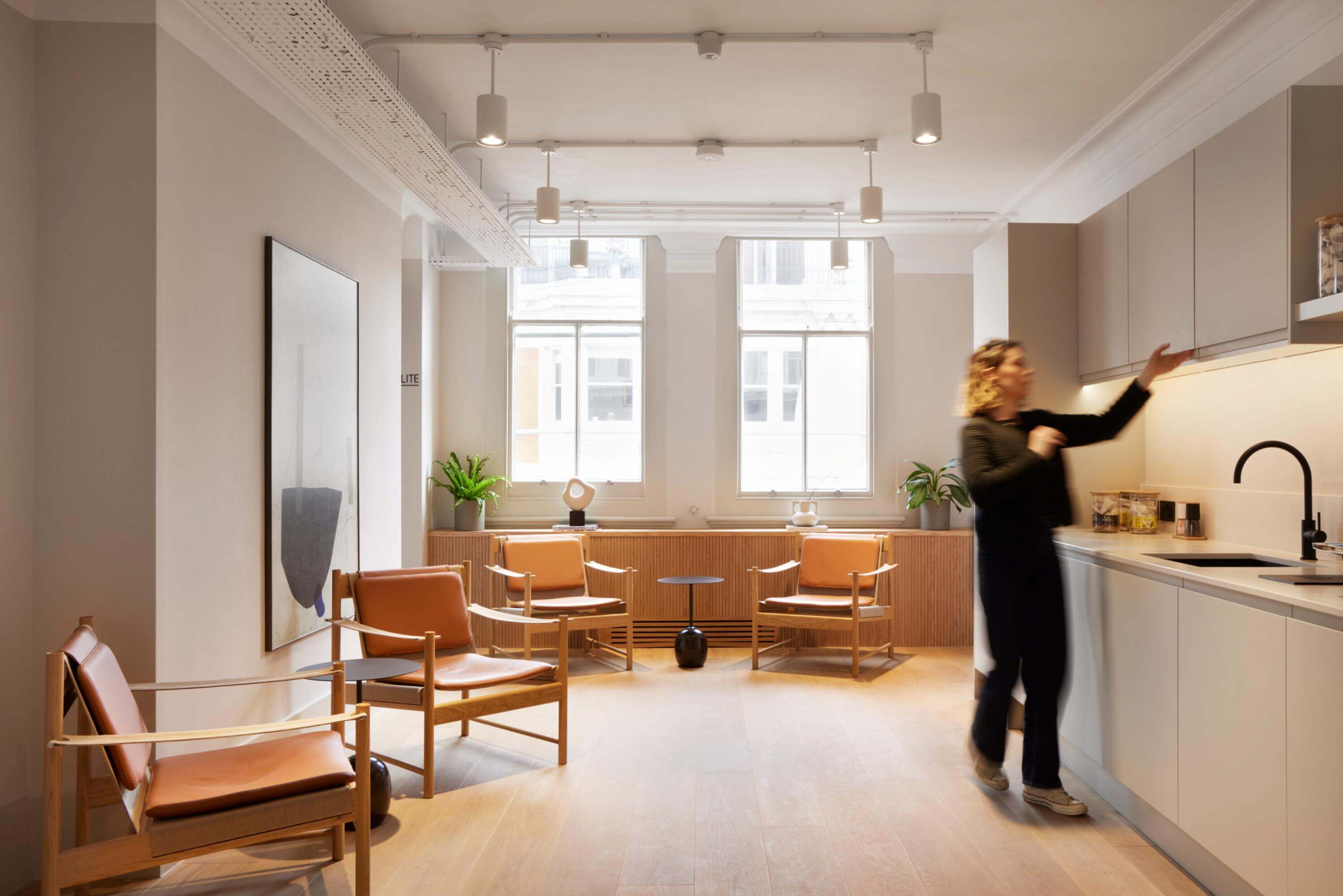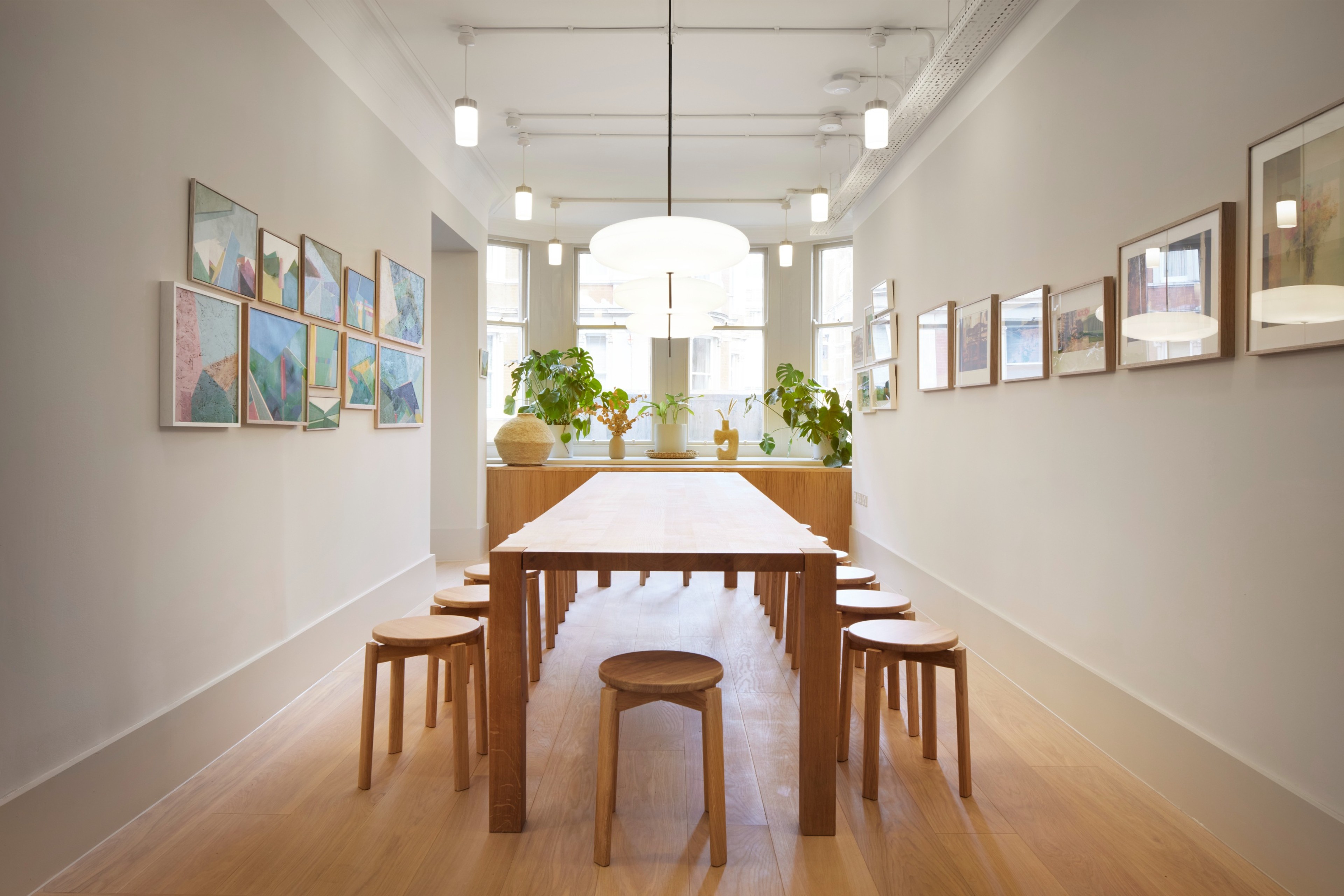 Our approach combined faithful restoration with precise, high-impact interventions. Layers of past fit-outs were peeled back to reveal original proportions, architectural detailing and long views through the plan. The narrow floorplates – where nearly a third of the building comprised corridor – were strategically replanned to improve usability and daylight, transforming isolated cellular rooms into coherent, adaptable workspace. A renewed reception brings clarity and welcome, setting a calm, contemporary tone for the floors above.