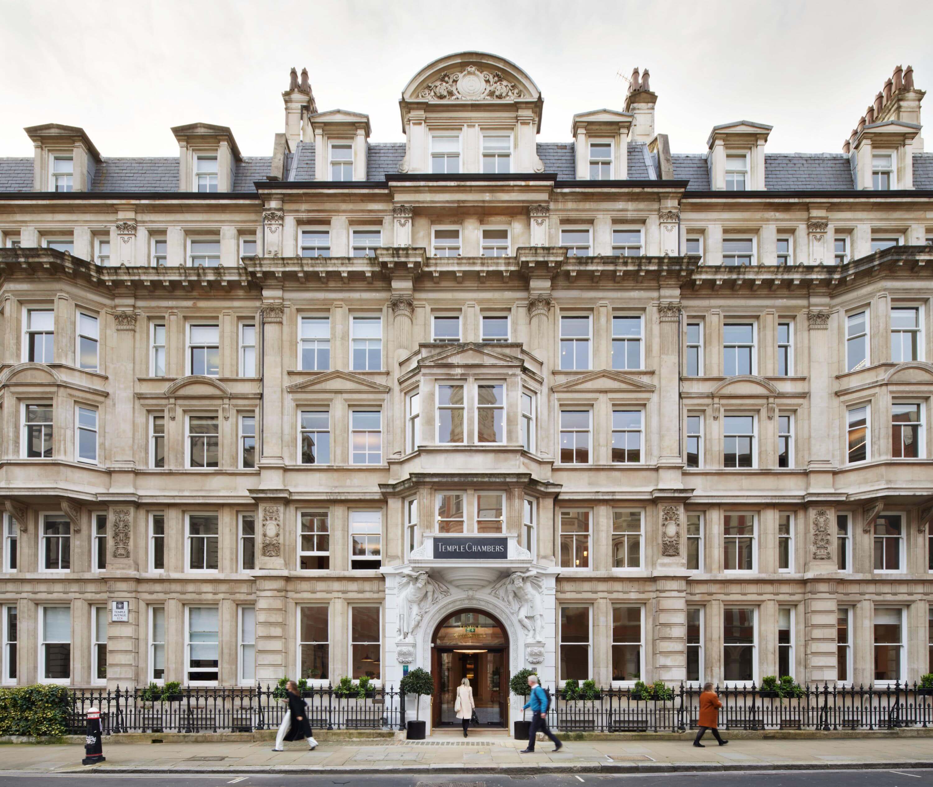 Temple Chambers today is a flexible, fully serviced business centre shaped by a phased programme of renewal with tenants in occupation. Its long, narrow plan has been carefully reworked to improve clarity, flow and connectivity, transforming formerly isolated suites into a coherent workplace. A welcoming reception anchors the seven-storey building, while new terraces, a gym, treatment rooms and cycle facilities support wellbeing and daily convenience. The result is an amenity-rich, future-ready environment that makes the most of its historic footprint and central location.